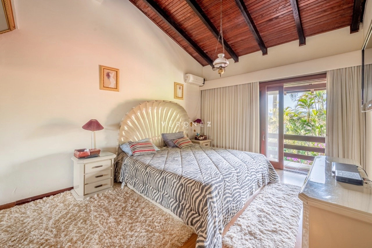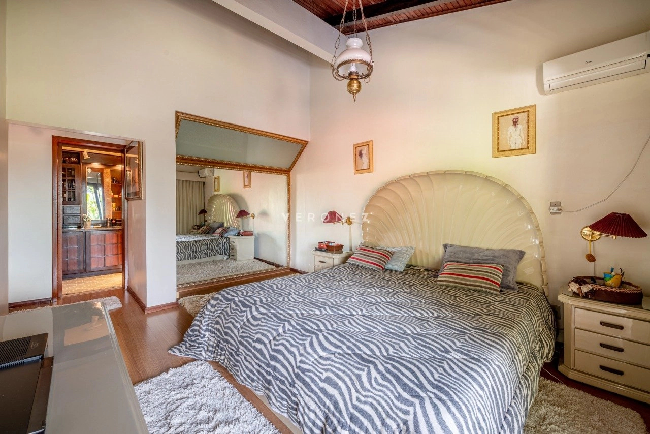 No piso superior, 3 suítes (sendo a master com closet e banheira de hidromassagem), quarto auxiliar, estar intimo com lareira, bar e lavabo.