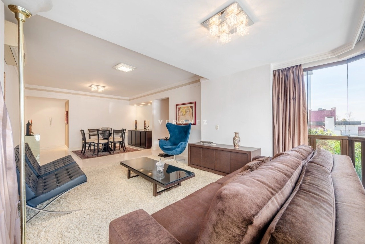 Ótimo apartamento de 136 m² privativos, 3 dormitórios sendo 1 suíte com sacada, closet e hidromassagem. Atualmente 1 dormitório transformado em sala de tv, mas com fácil reversão. Sala ampla com 2 ambientes, cozinha mobiliada com área de serviço separada, dependência completa. Possui 2 vagas lado a lado cobertas e depósito.