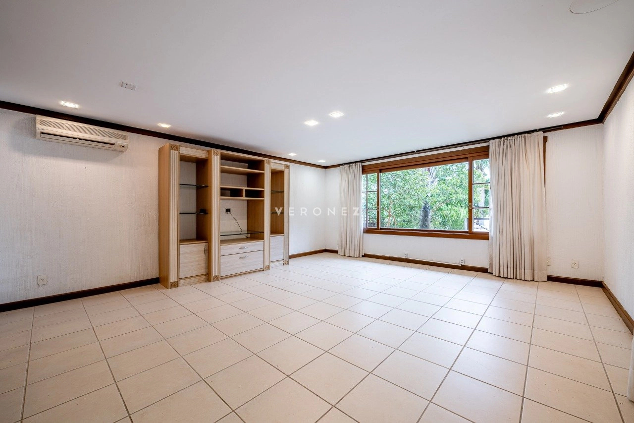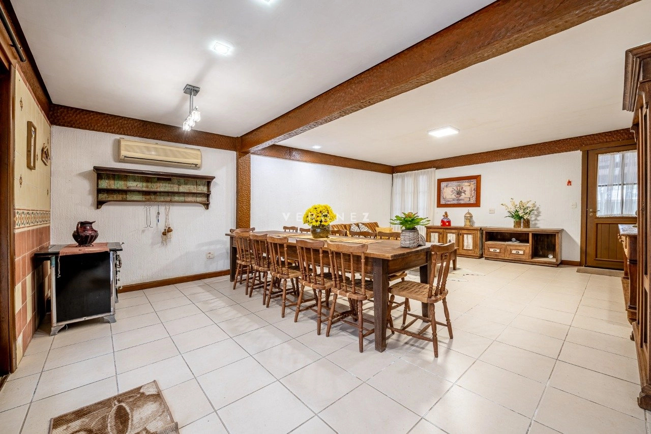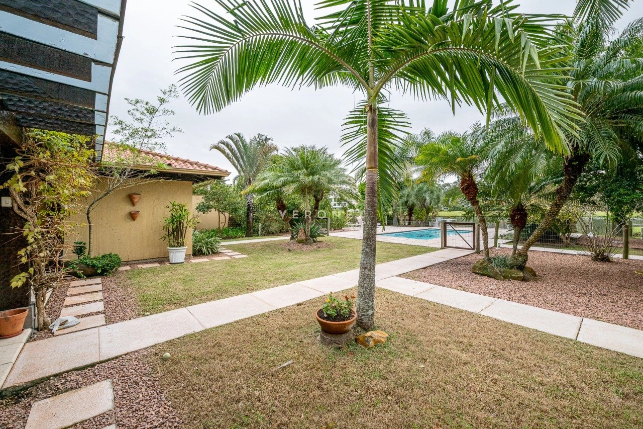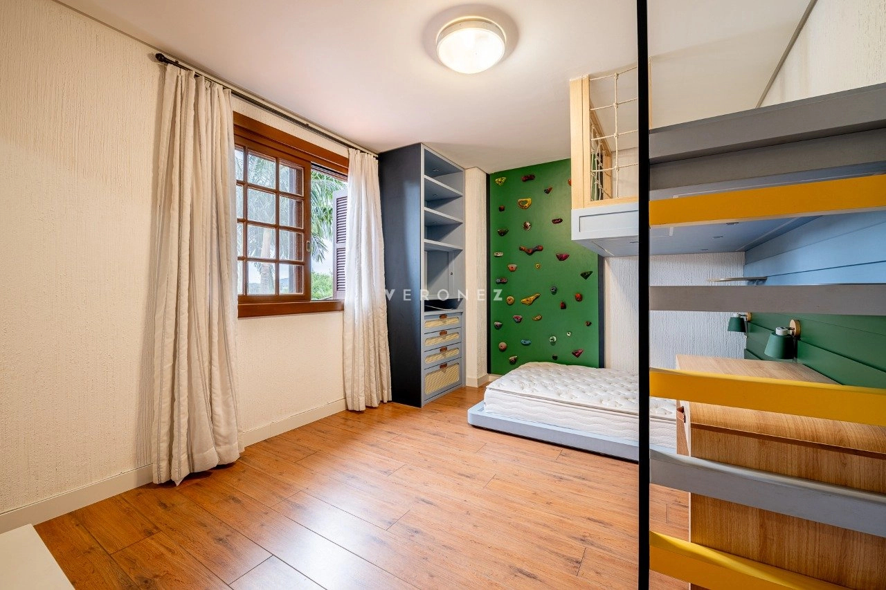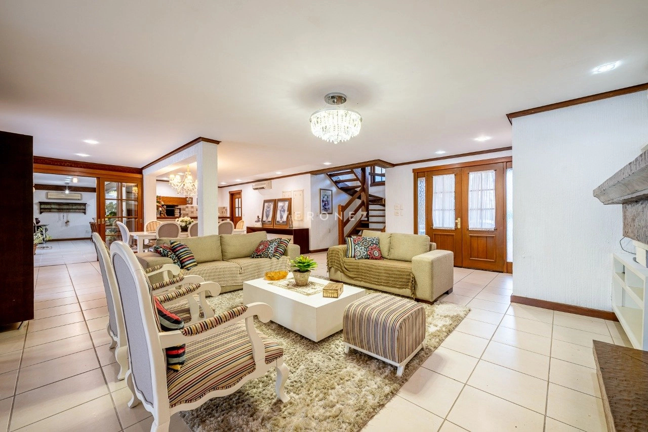 A área social é integrada e muito bem planejada, com sala de estar com lareira, sala de TV, cozinha mobiliada, despensa e área de serviço. Conta ainda com espaço gourmet com churrasqueira e uma varanda ampla com vista deslumbrante para o lago.