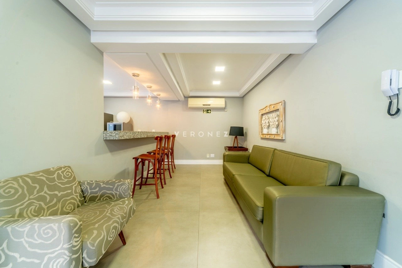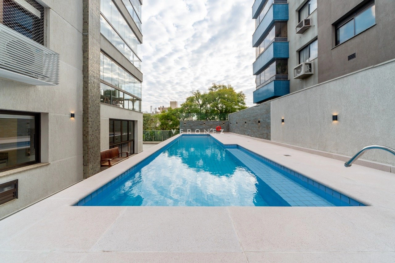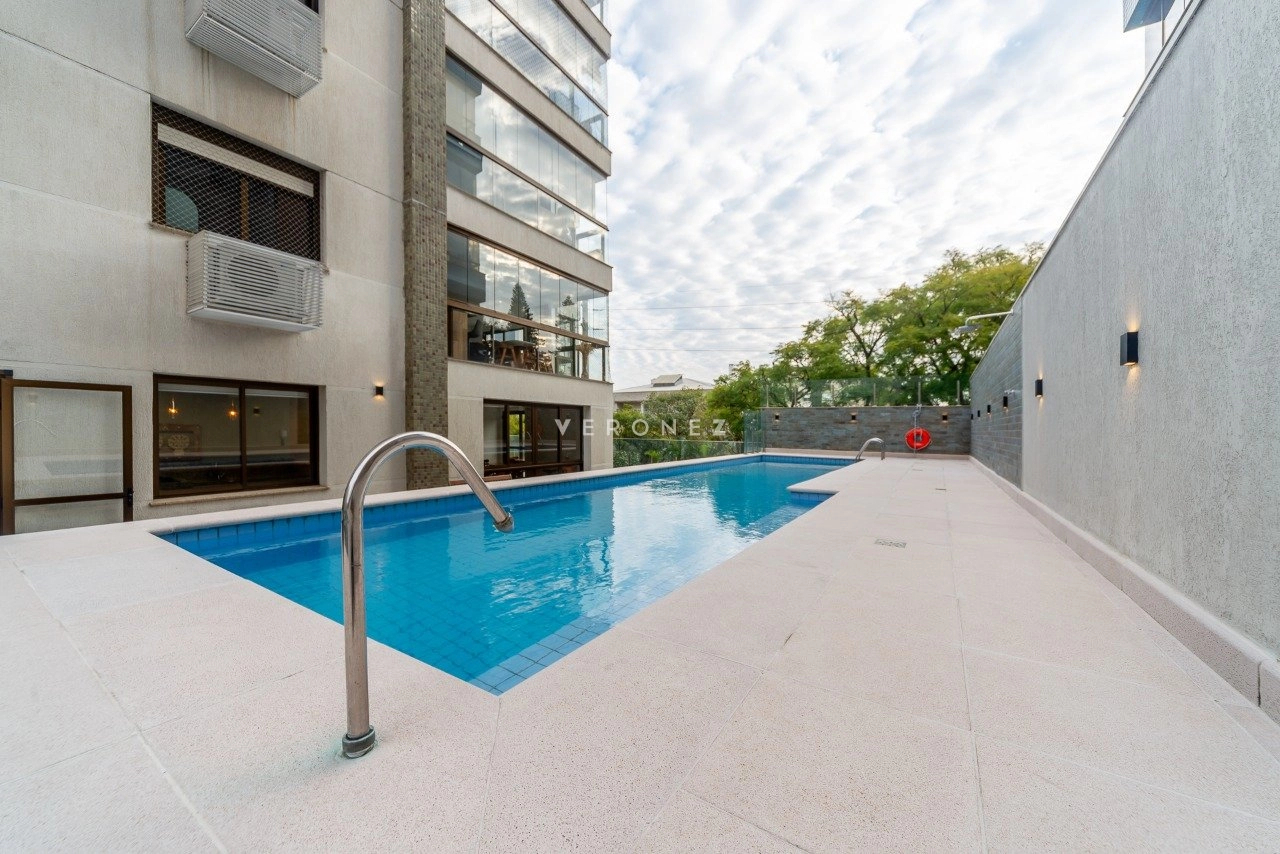 Apartamento com 124m² de área privativa, mobiliado, 3 suítes, sendo 2 americanas e 1 master com closet, localizado em andar alto, com vista definida para o Guaíba. Living para 2 ambientes, sacada integrada com churrasqueira, lavabo, cozinha equipada com eletros de alto padrão, área de serviço independente.