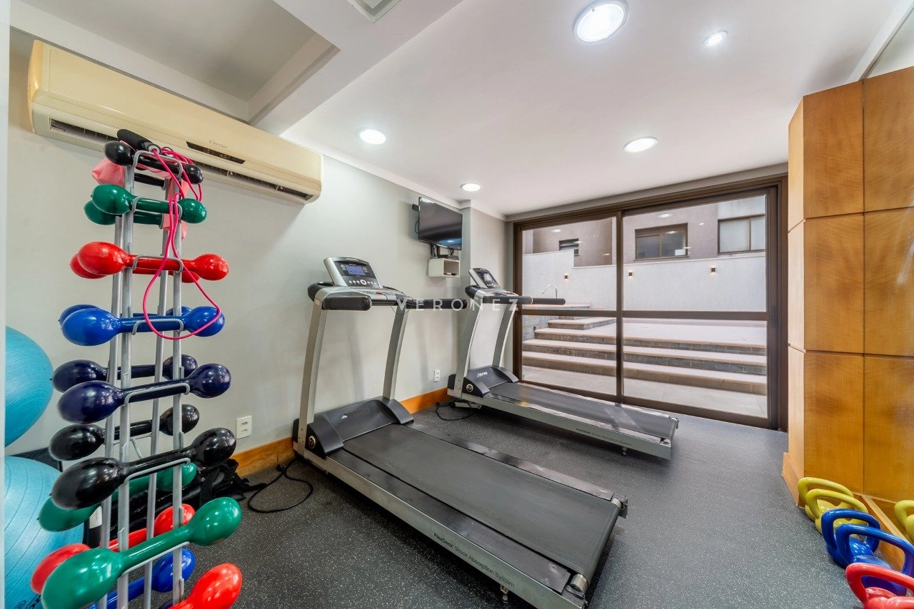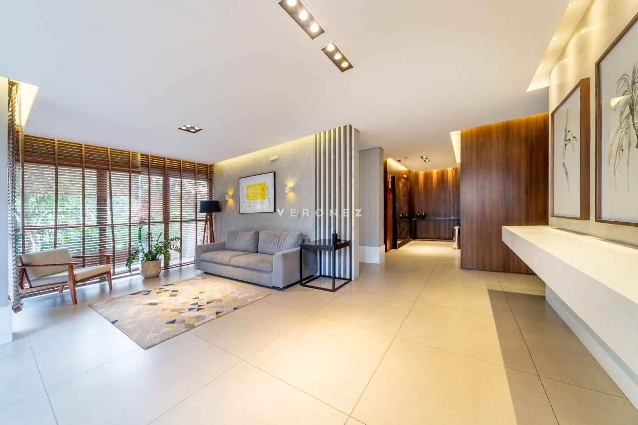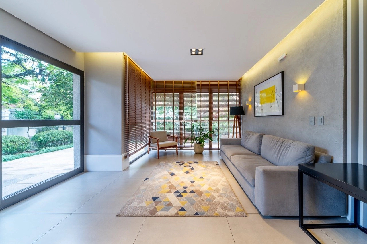 Apartamento com 124m² de área privativa, mobiliado, 3 suítes, sendo 2 americanas e 1 master com closet, localizado em andar alto, com vista definida para o Guaíba. Living para 2 ambientes, sacada integrada com churrasqueira, lavabo, cozinha equipada com eletros de alto padrão, área de serviço independente.