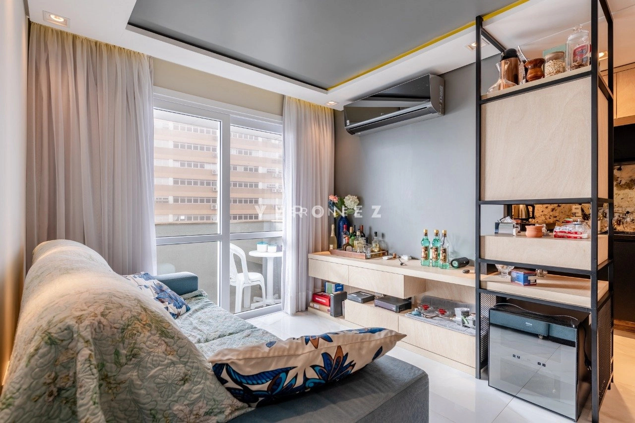 Ótimo apartamento no bairro Petrópolis com 1 dormitório suíte, armários no banheiro, dormitório e cozinha, closet, lavabo, churrasqueira, ar condicionado, área de serviço, vaga de garagem, portaria 24h.