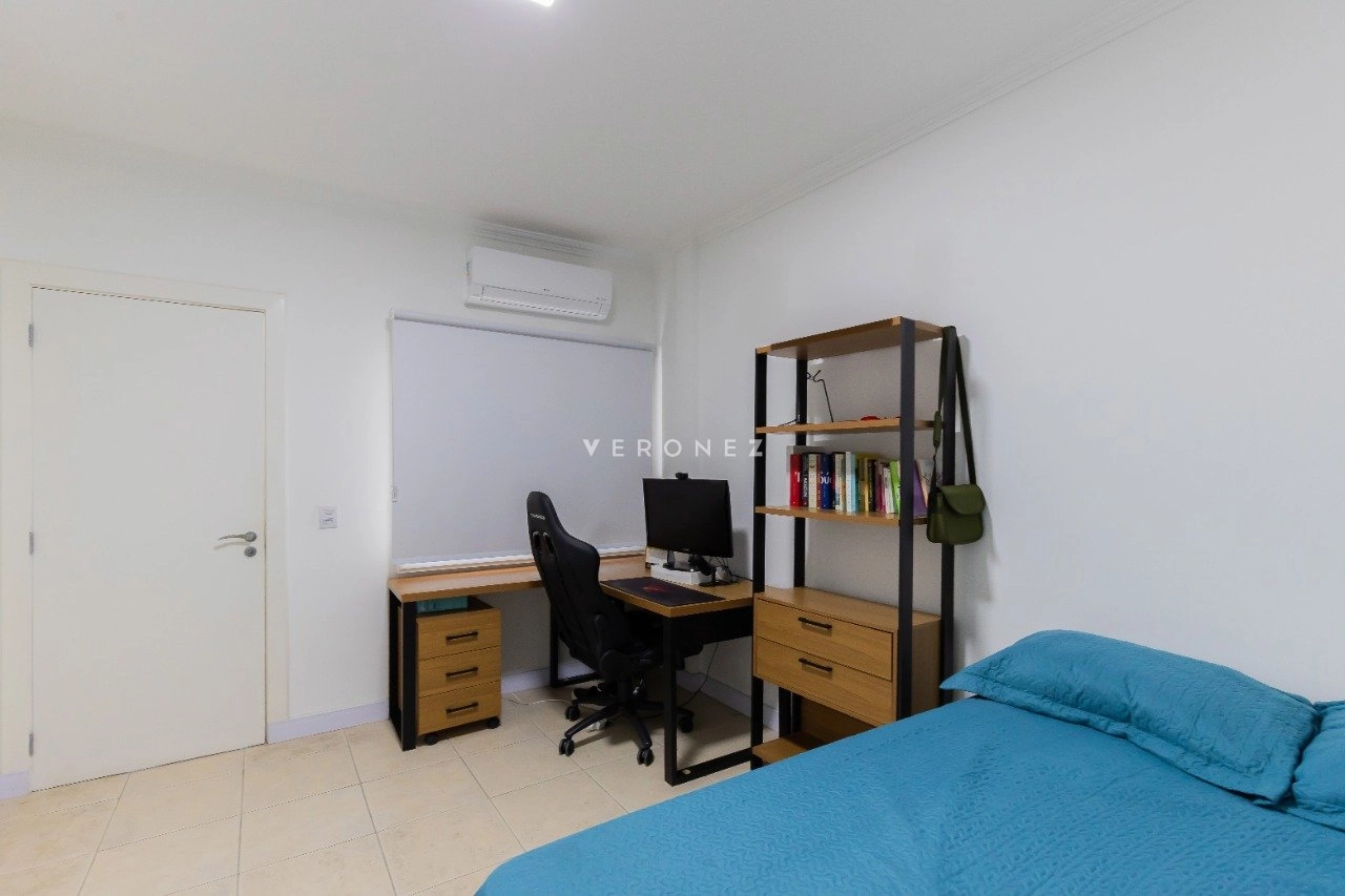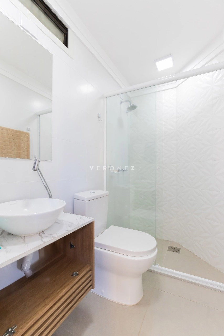 Andar superior: 1 dormitório, banheiro completo, sacada ampla, sala de estar, lareira, espaço gourmet com churrasqueira e um ótimo terraço com piscina. Conta ainda com uma escada para acesso a um depósito.