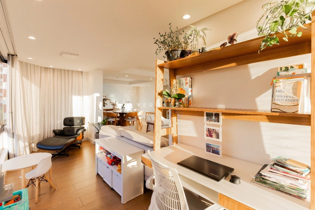 Andar inferior: Living amplo 2 ambientes, espaço office, sacada com linda vista do Por do Sol, cozinha integrada, área de serviço separada e dependência completa, despensa. Conta com 3 dormitórios sendo 1 suíte e banheiro social.