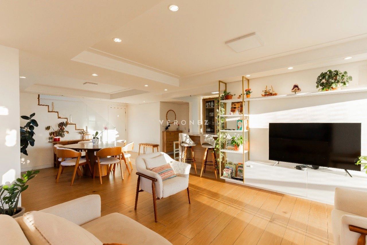 Com 303m² privativos, a cobertura é distribuída da seguinte maneira: