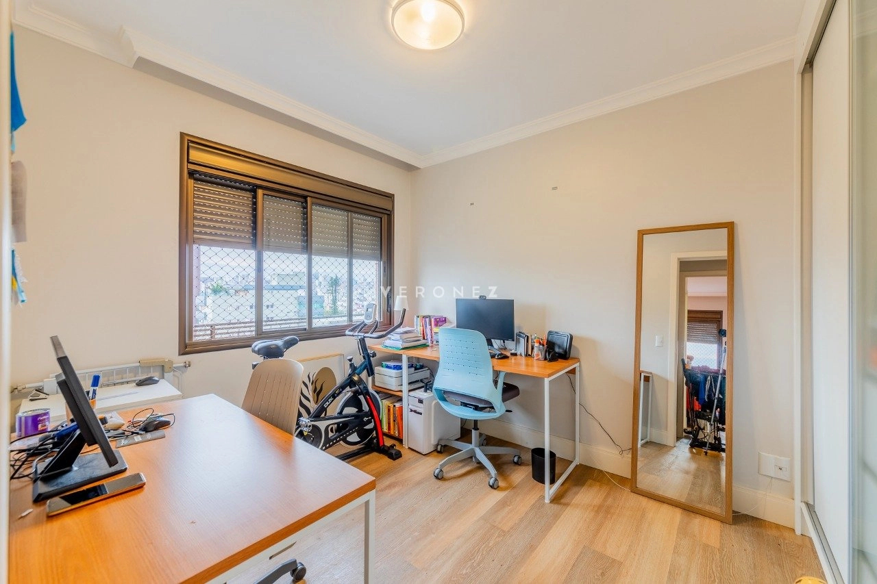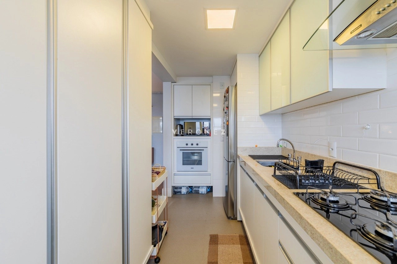 Apartamento de 68 m² de área privativa, semi-mobiliado, 2 dormitórios (1 suite), living para 2 ambientes com ampla esquadria, banheiro social, cozinha com churrasqueira e área de serviço integrada. Possui 2 vagas de garagem individuais.