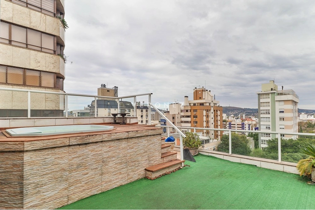 Cobertura com cara de casa em bairro nobre de Porto Alegre, em edifício pequeno com apenas 3 moradores, elevador, gás central e vídeo porteiro controlado pela TV ou celular. O imóvel oferece muito espaço social com living em tabuão com lareira e varanda, cozinha ampla com mesa de refeições, lavanderia e dependência completa, além de 4 dormitórios amplos, incluindo suíte com closet e espaçoso quarto de banho. A escada em madeira nobre de dois lances é um destaque arquitetônico e de design. A parte superior lembra uma casa da Serra, com detalhes em madeira de lei, 2 terraços sendo um frontal com jacuzzi e outro maior com lavanderia e banheiro de apoio, além de salão de festas com vários layouts, bar em madeira com cozinha americana, churrasqueira com acabamento exclusivo, lareira e mais um ambiente que pode ser utilizado como 5º dormitório, escritório, academia ou atelier. Conta ainda com garagem para 2 veículos grandes, depósito e acessibilidade para cadeirante. O condomínio fechado garante segurança e privacidade, com câmeras de vigilância e interfone. Localização privilegiada próxima ao Grêmio Náutico União, Zaffari da Carazinho, academias, armazéns, padarias, pet shops e avenidas Carlos Gomes e Protásio, reunindo praticidade, exclusividade e bem-estar em um imóvel único. Preço e disponibilidade do imóvel sujeitos a alteração sem aviso prévio.