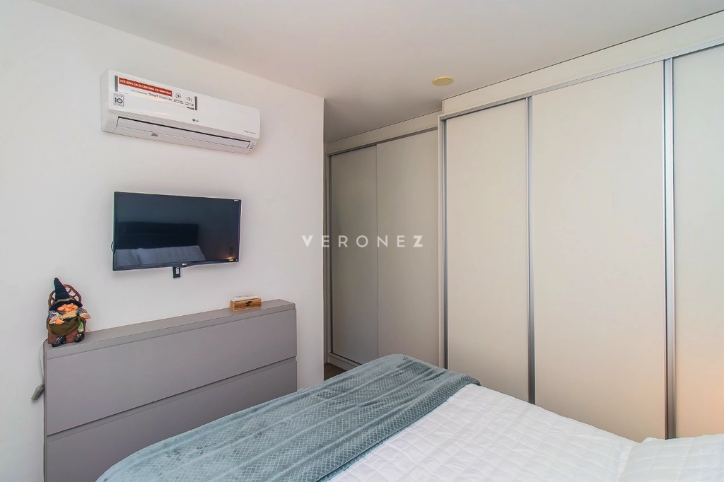 Apartamento com 80m² privativos, 2 suítes e 2 vagas de garagem no Petrópolis! Apartamento funcional, com planta bem distribuída. Living com janelas lado a lado, proporcionando excelente iluminação natural e ventilação. Cozinha americana, planejada e equipada com churrasqueira. Área de serviço individual, com ótima incidência de sol. O imóvel conta ainda com lavabo, móveis fixos de qualidade e splits instalados em todos os ambientes. Edifício com baixo custo condominial, salão de festas bem equipado, dois elevadores e serviço de zeladoria. Agende sua visita e venha conhecer o seu novo lar! Preço e disponibilidade do imóvel sujeitos a alteração sem aviso prévio.