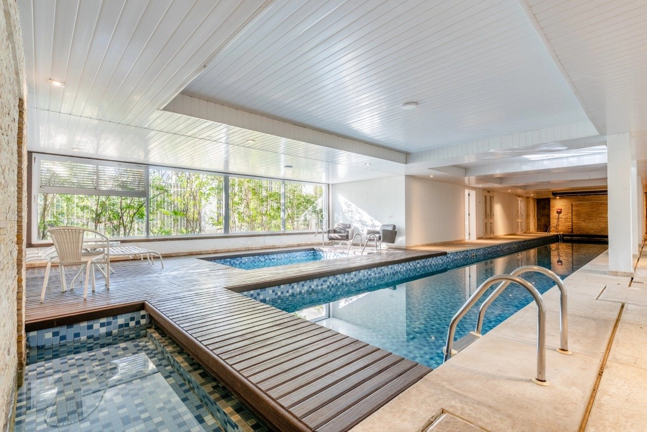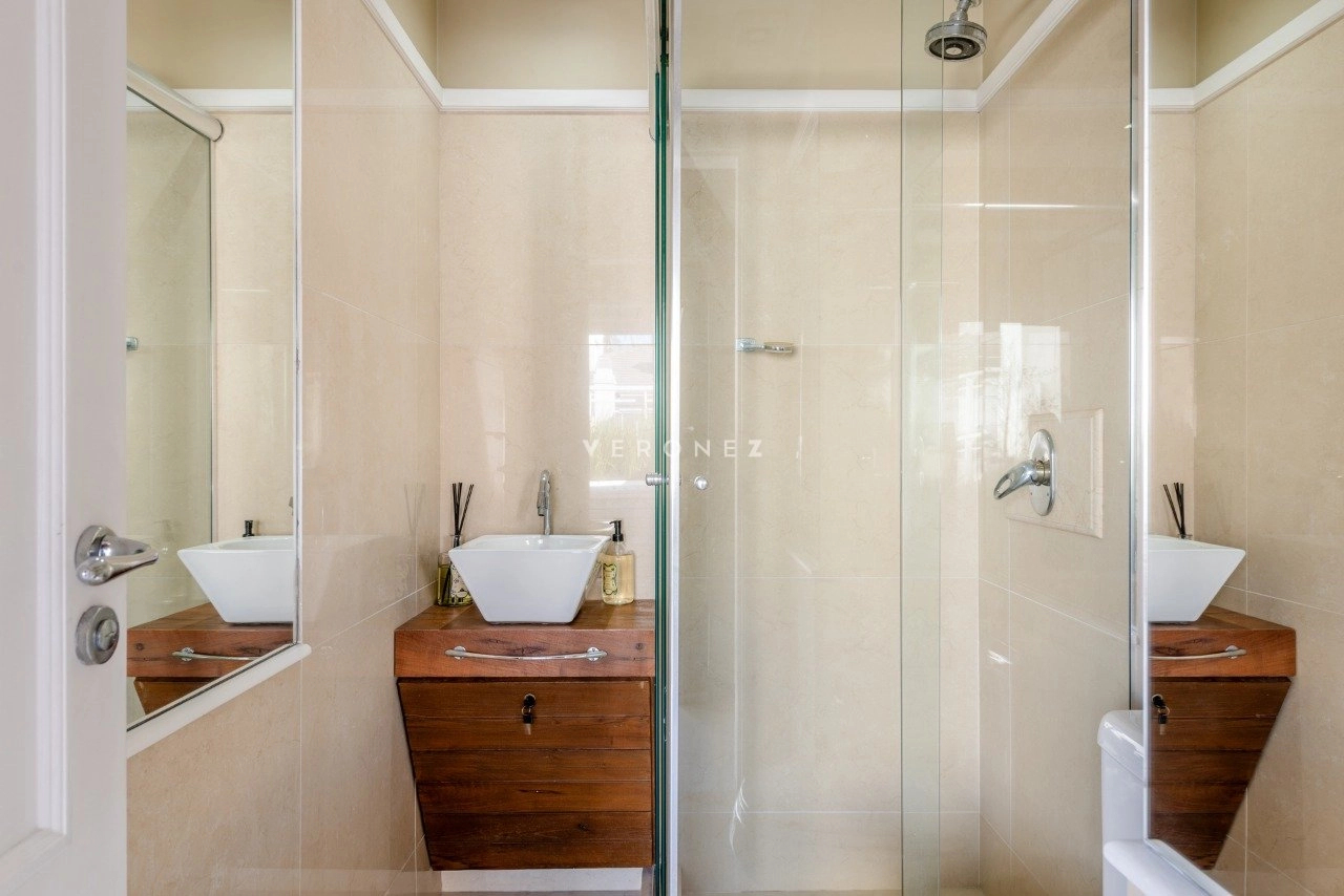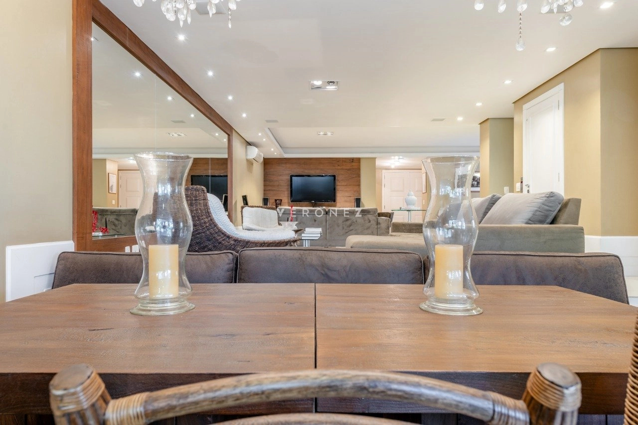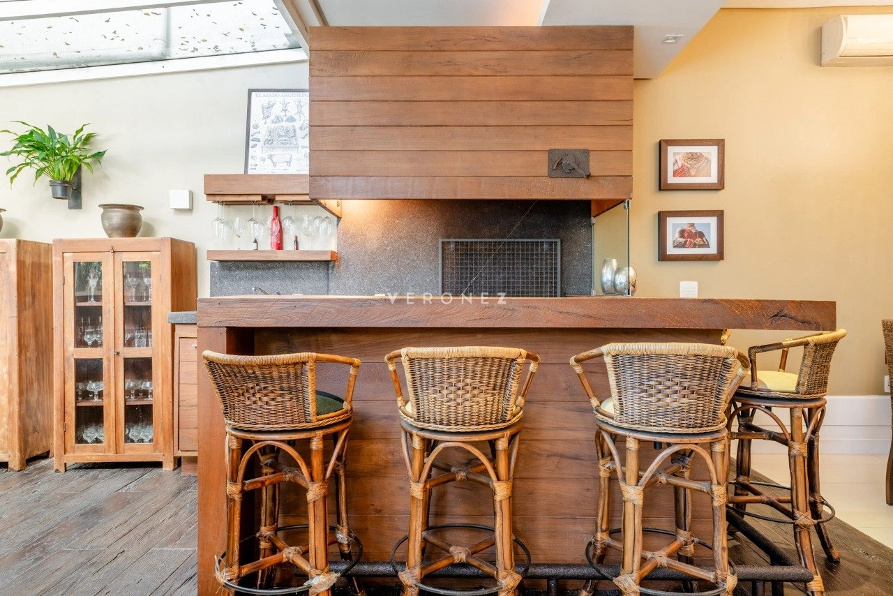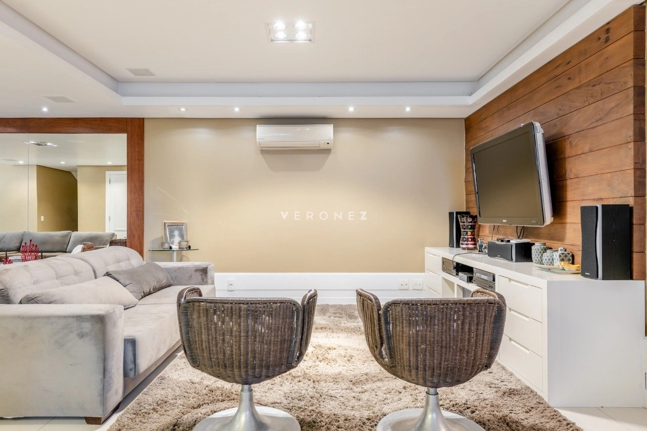 O imóvel conta com 3 suítes com closet, home office, lavabo, dependência completa e banheiro auxiliar, além de elevador interno, proporcionando conforto em todos os níveis.
