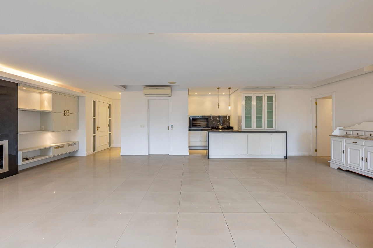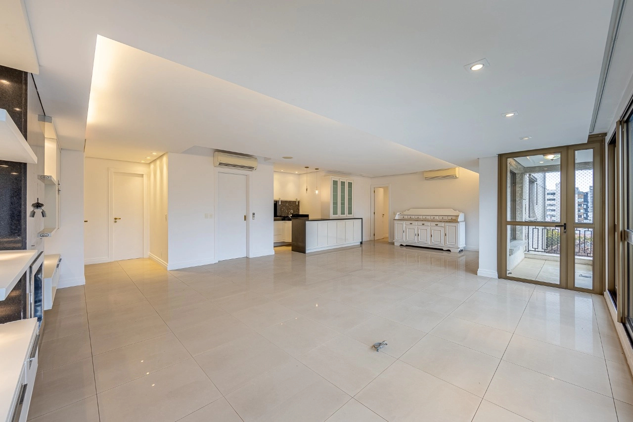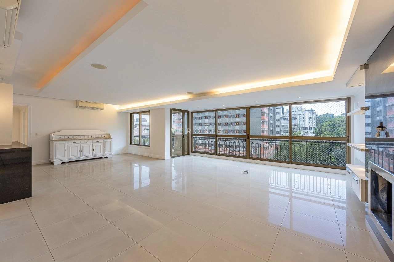 Apartamento semimobiliado de 161m² no bairro Moinhos de Vento, com 3 suítes, sendo 1 master com closet e hidromassagem e 2 vagas de garagem.