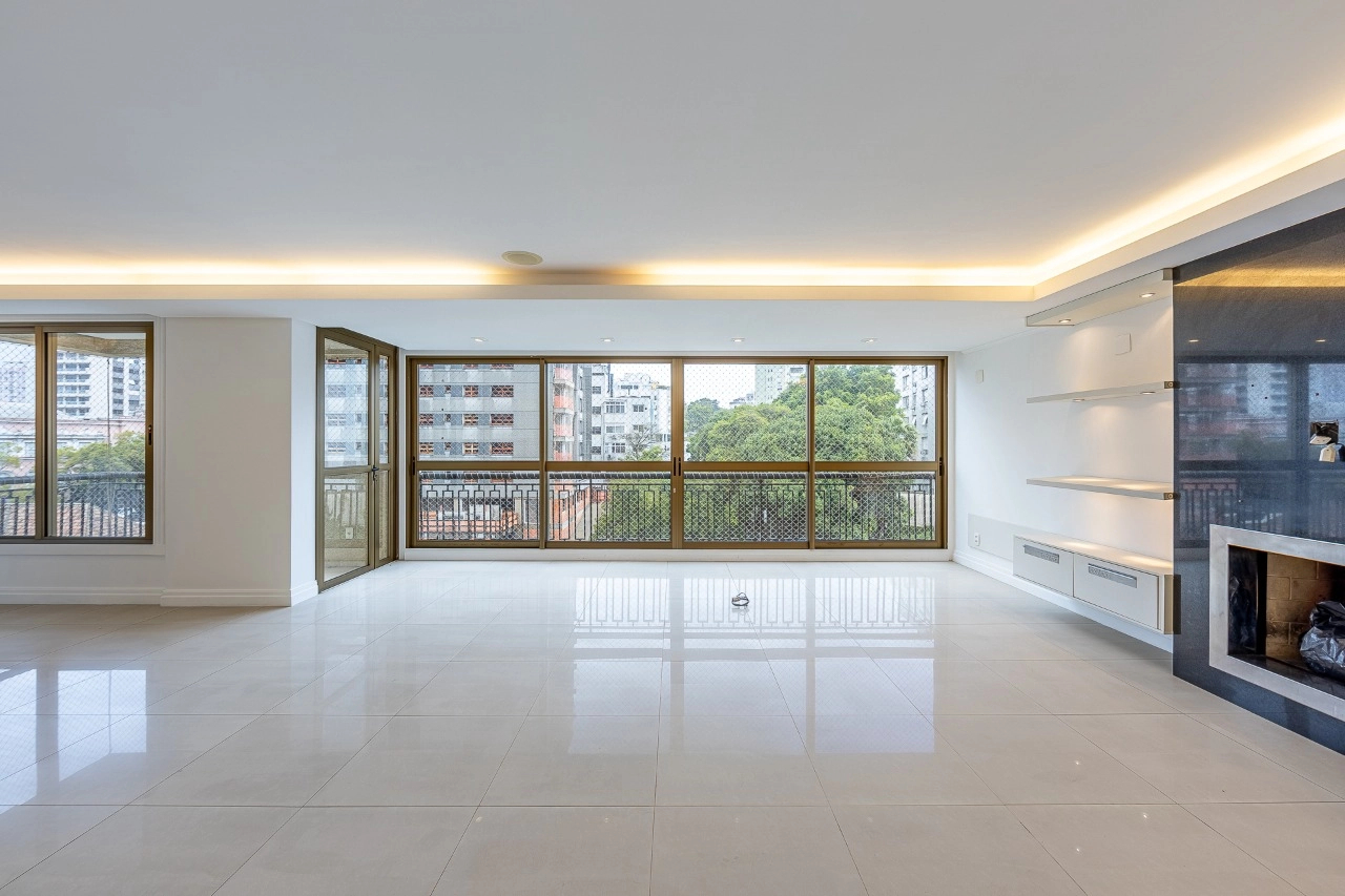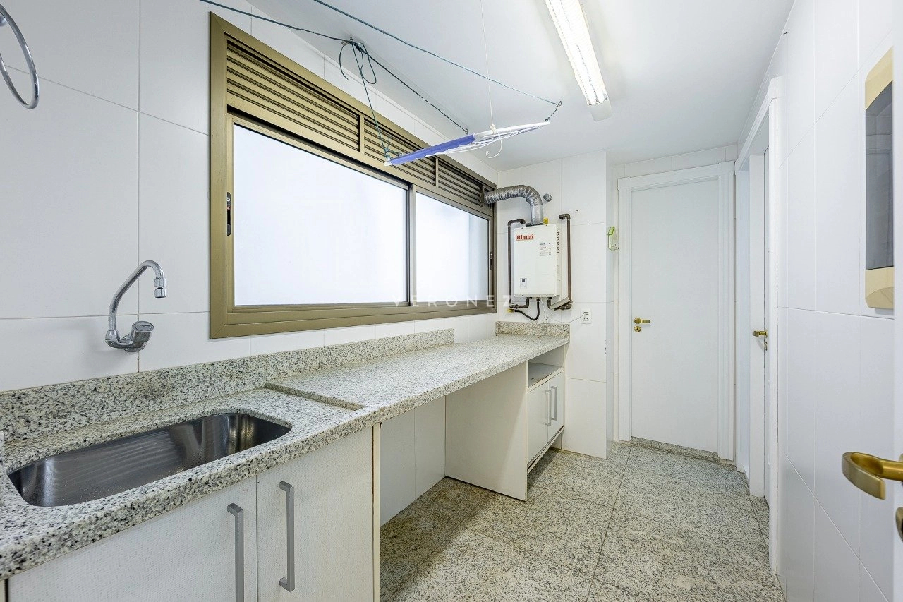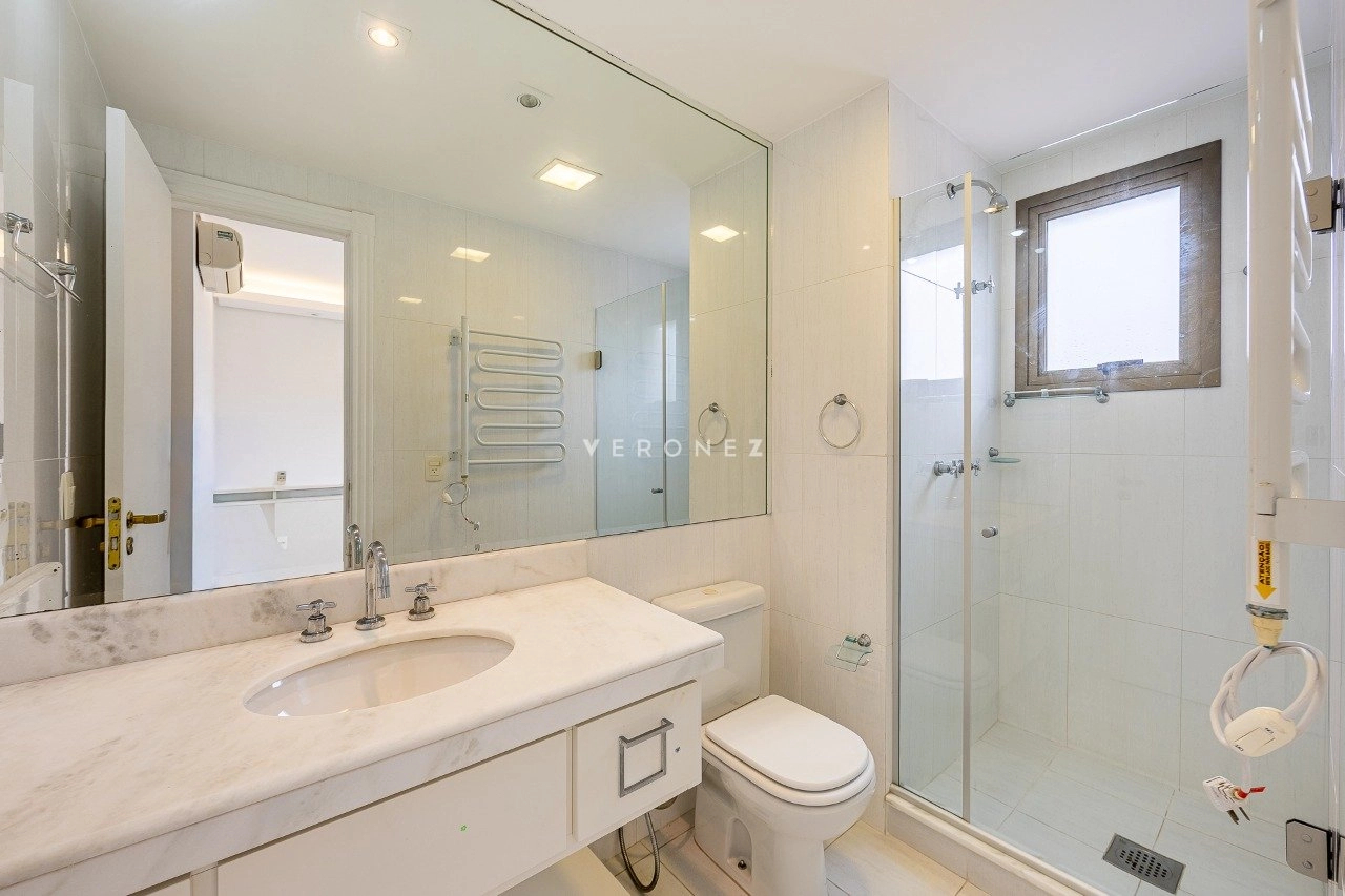 Apartamento semimobiliado de 161m² no bairro Moinhos de Vento, com 3 suítes, sendo 1 master com closet e hidromassagem e 2 vagas de garagem.