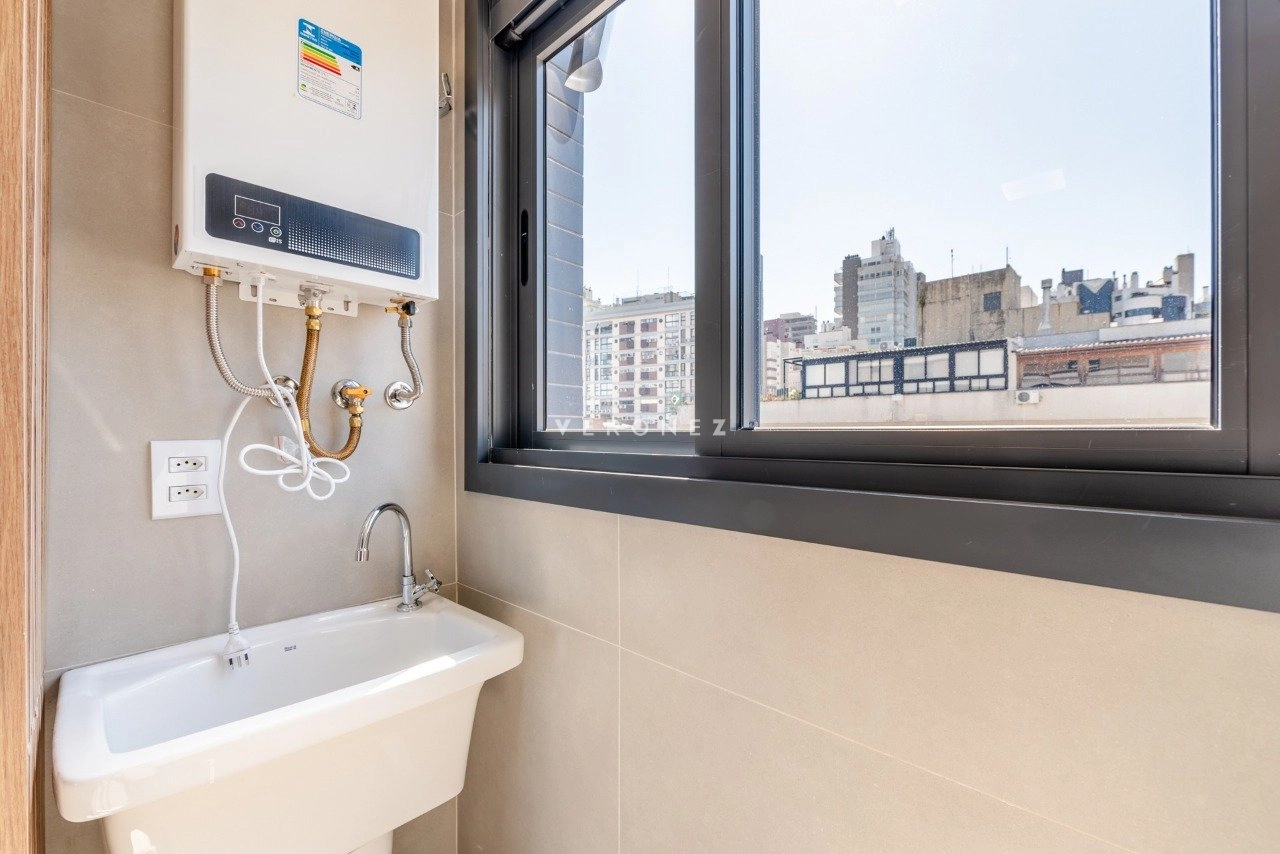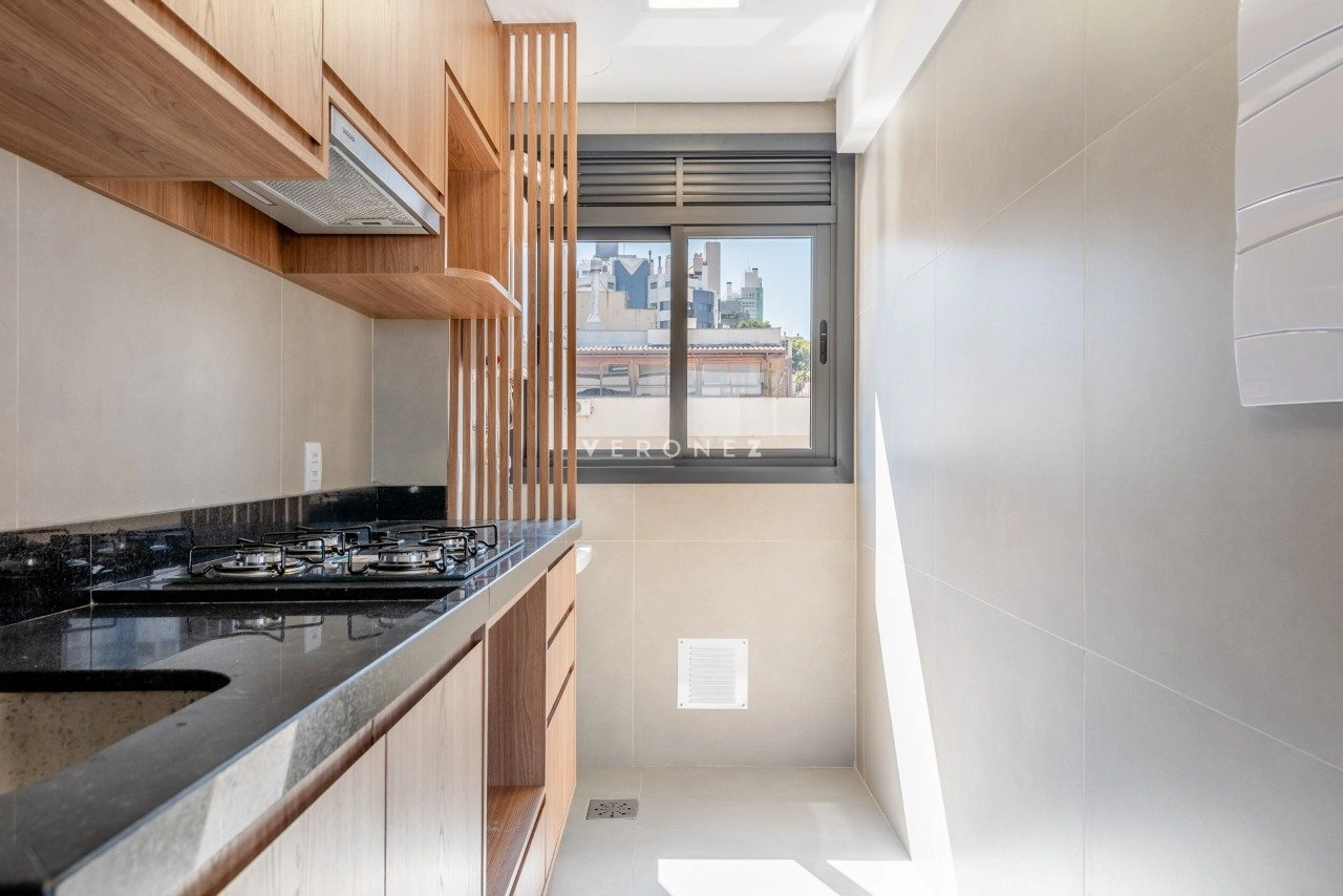 Apartamento 1 dormitório semimobiliado com vaga, no Bairro Rio Branco. Excelente imóvel no 6º andar, de fundos, com 51 m² de área privativa, hall, sala com churrasqueira, dormitório, lavabo, banheiro suíte, cozinha, área com tanque, piso porcelanato, Localizado próximo à av. Goethe e rua Pedro Weingartner, com fácil acesso ao Zaffari da Cabral.