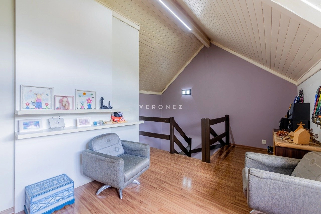 No piso superior, são 3 dormitórios, sendo 1 suíte, além de banheiro social.