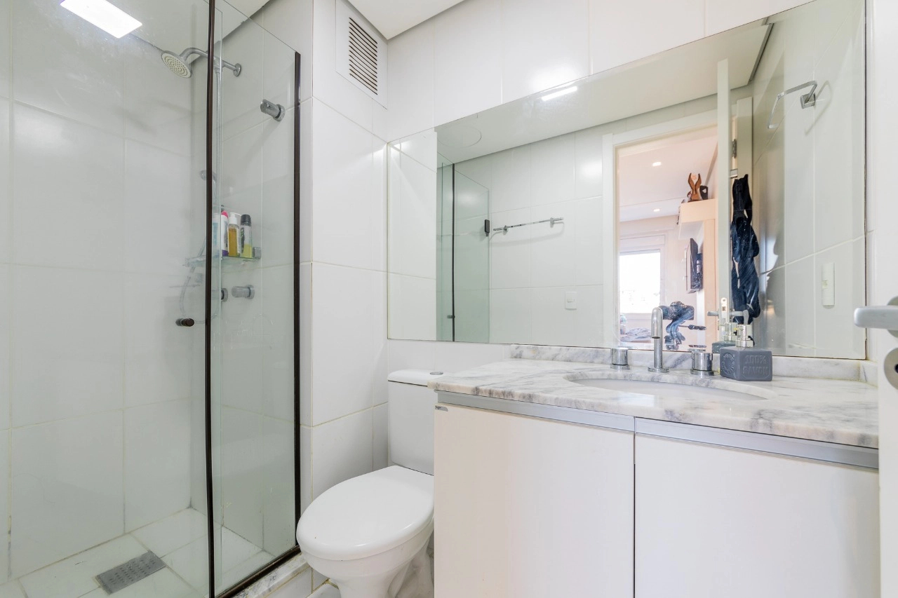 Com 56m² privativos, andar intermediário com vista livre, sala 2 ambientes bem definidos e cozinha com área de serviço separada.Suíte com ótimo espaço de armário, segundo quarto hoje usado como escritório. Split em todos os cômodos. Fica MOBILIADO como nas fotos.