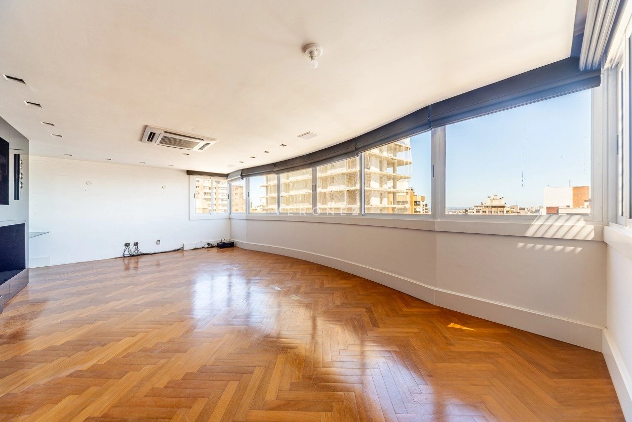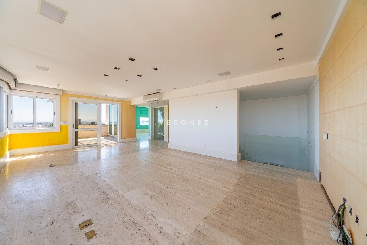 Cobertura semimobiliada com 278 m² de área privativa, com 2 dormitórios sendo 2 suítes, incluindo uma suíte master equipada com closet e banheira de hidromassagem. O imóvel oferece hall e elevador privativos, proporcionando maior comodidade.