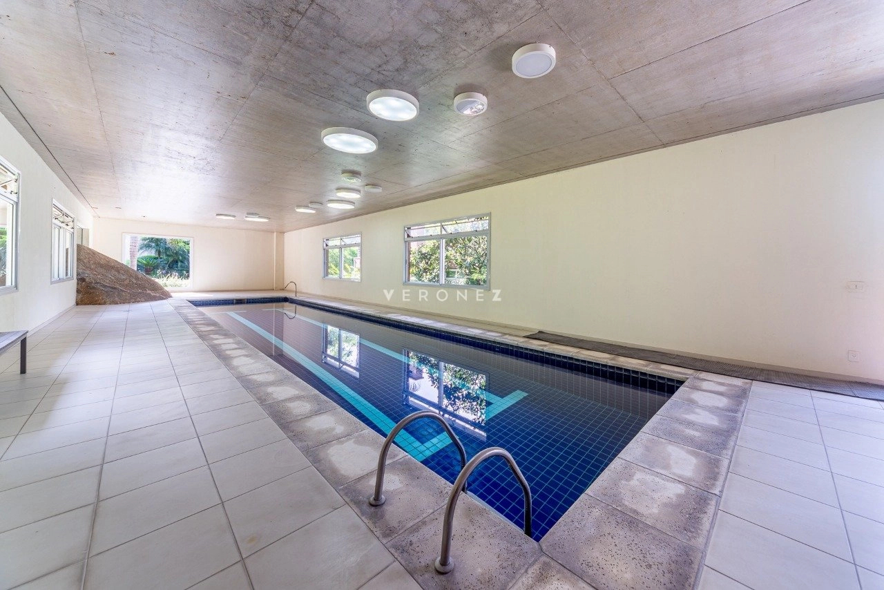 Sua infraestrutura é completa e conta com portaria 24h, portaria virtual, porte cochère, fitness externo, sala fitness, salão de festas, piscina aquecida, quadras esportivas, incluindo de tênis e beach tennis, playground, jardim, gás central, interfone e serviço de zeladoria. O ambiente combina segurança, lazer e bem-estar em meio a um cenário natural encantador.