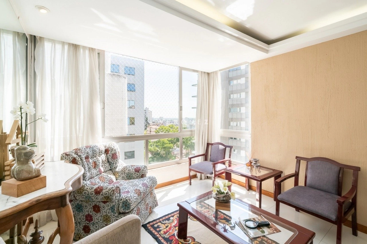Cobertura sofisticada com 218 m² privativos, localizada no bairro Higienópolis. Possui 3 dormitórios, 2 banheiros, ampla sala de estar com vista para o pôr do sol, cozinha com área de serviço e dependência completa.