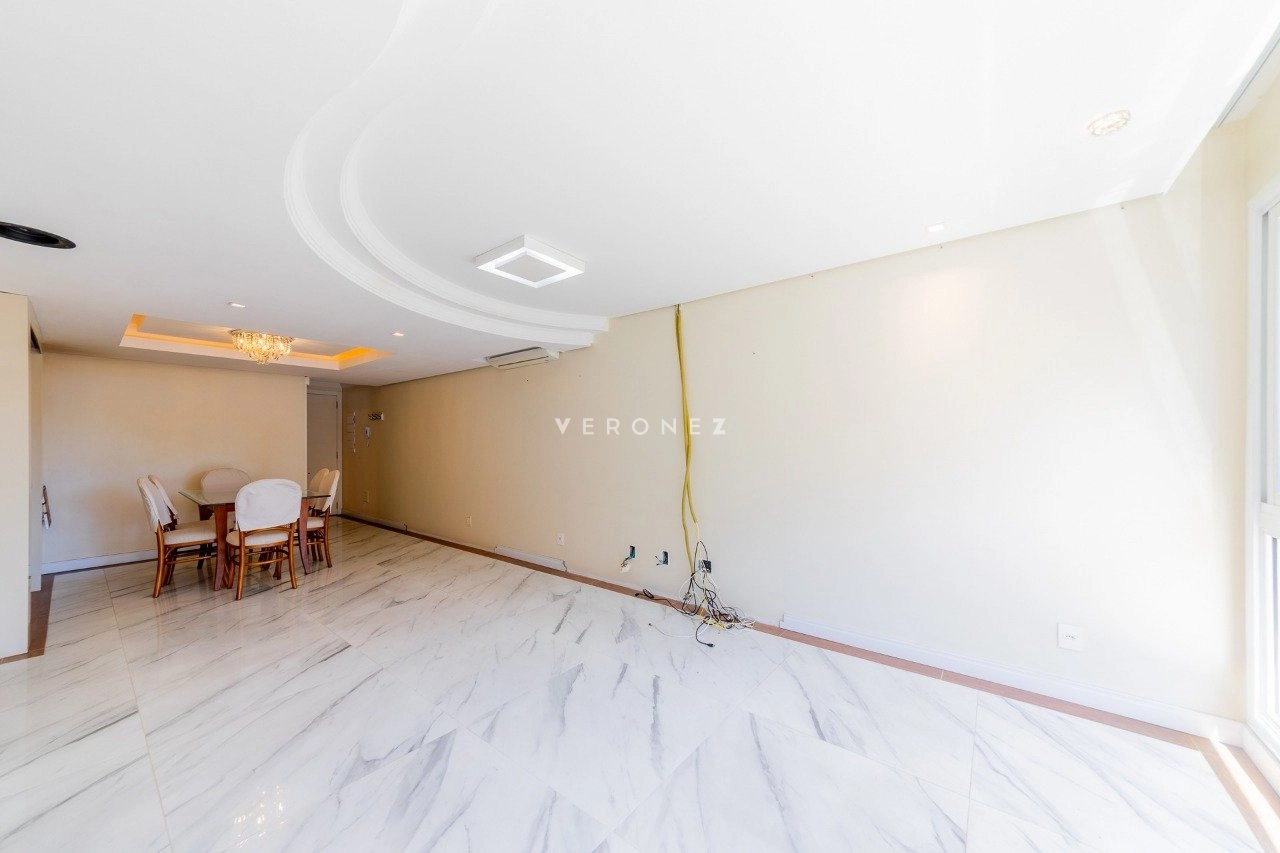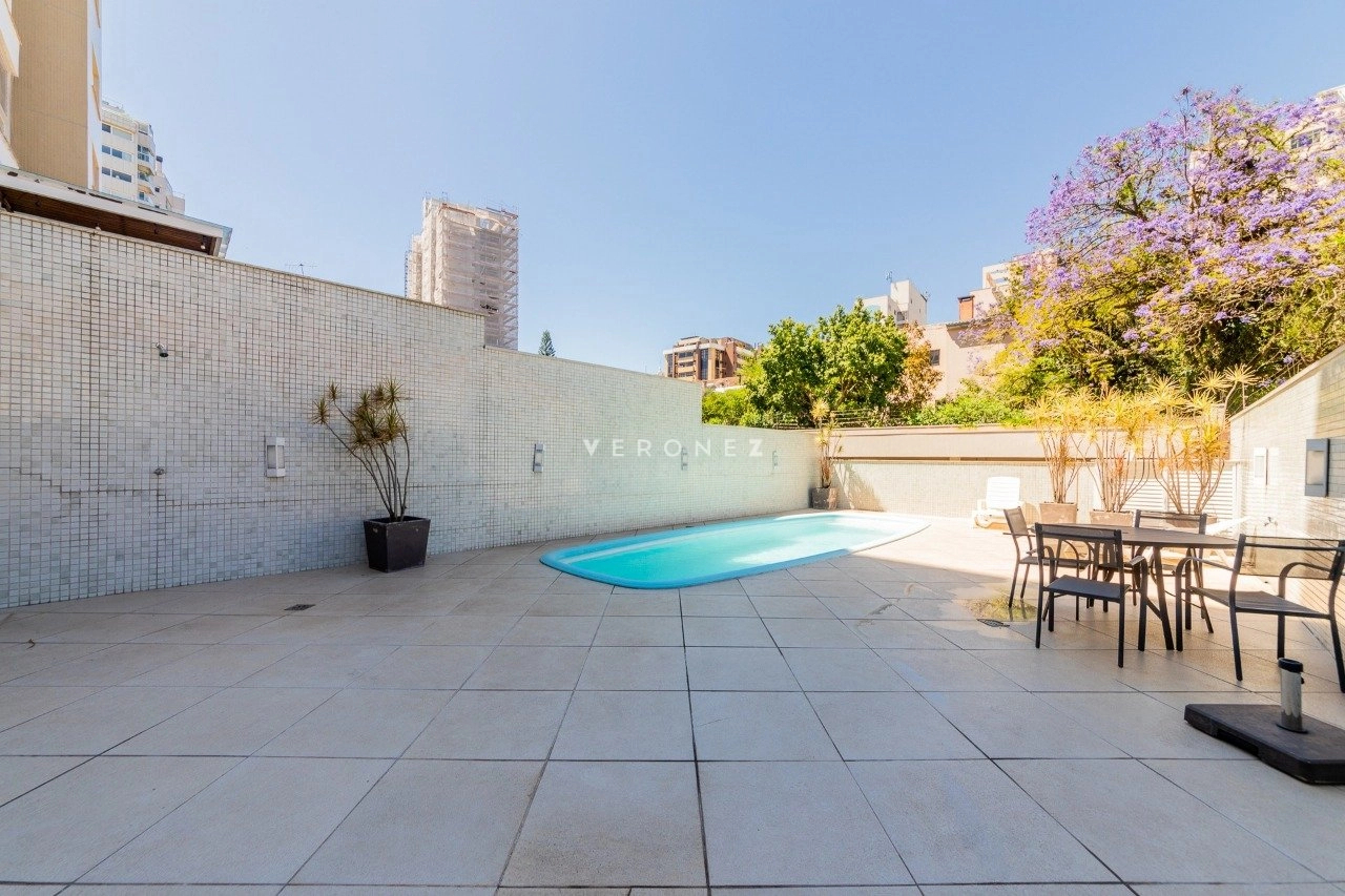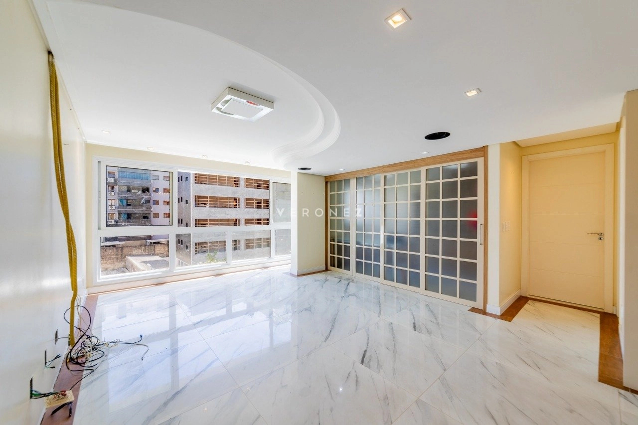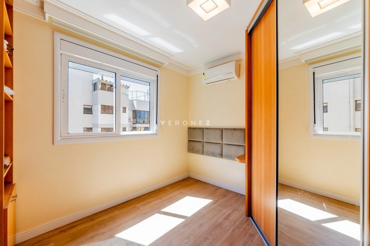 Apartamento semimobiliado com 103 m² privativos, living para 2 ambientes, espaço gourmet com churrasqueira, lavabo, 2 dormitórios, sendo 1 suíte, além de um escritório que pode ser utilizado como terceiro dormitório. Conta ainda com banheiro social, cozinha com área de serviço separada e 3 vagas de garagem individuais. O imóvel possui ótima posição solar, garantindo luminosidade e conforto térmico ao longo do dia.