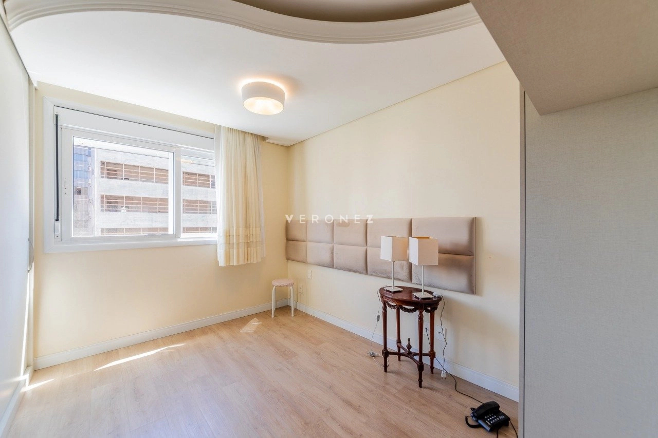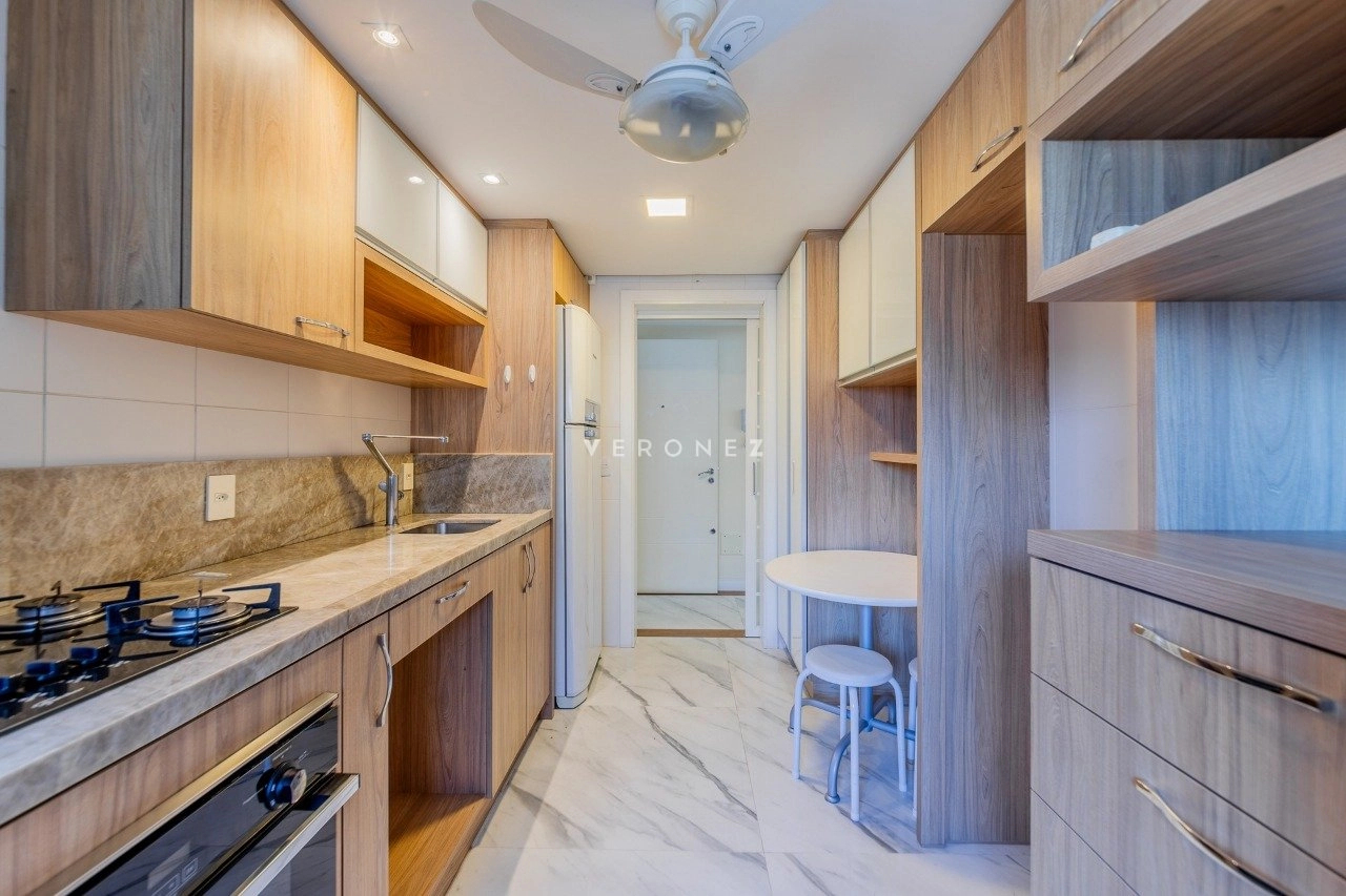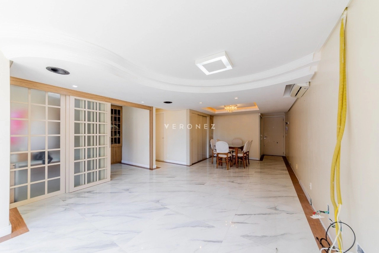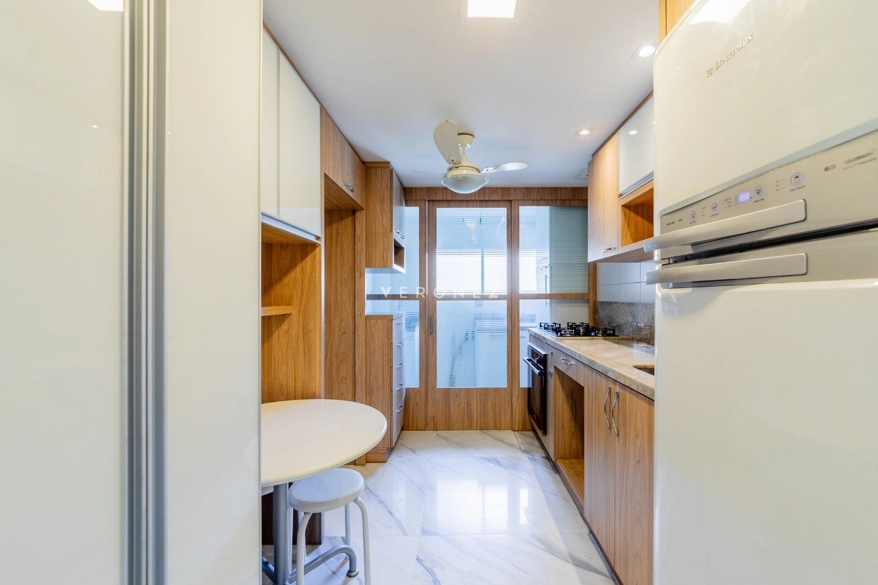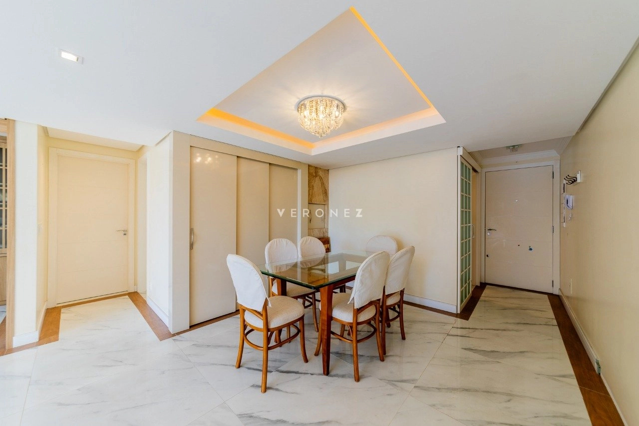 Apartamento semimobiliado com 103 m² privativos, living para 2 ambientes, espaço gourmet com churrasqueira, lavabo, 2 dormitórios, sendo 1 suíte, além de um escritório que pode ser utilizado como terceiro dormitório. Conta ainda com banheiro social, cozinha com área de serviço separada e 3 vagas de garagem individuais. O imóvel possui ótima posição solar, garantindo luminosidade e conforto térmico ao longo do dia.