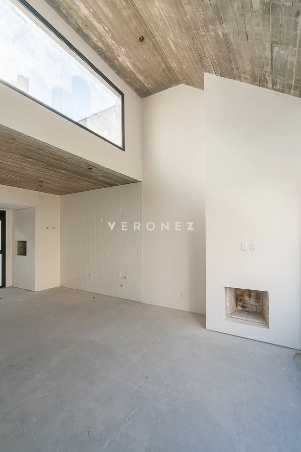 No andar inferior, além das suítes, possui living para dois ambientes com lareira, cozinha integrada com churrasqueira, lavabo e área de serviço separada.