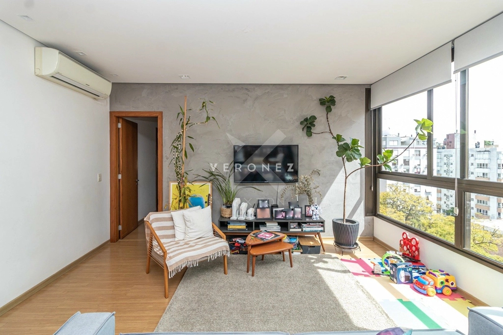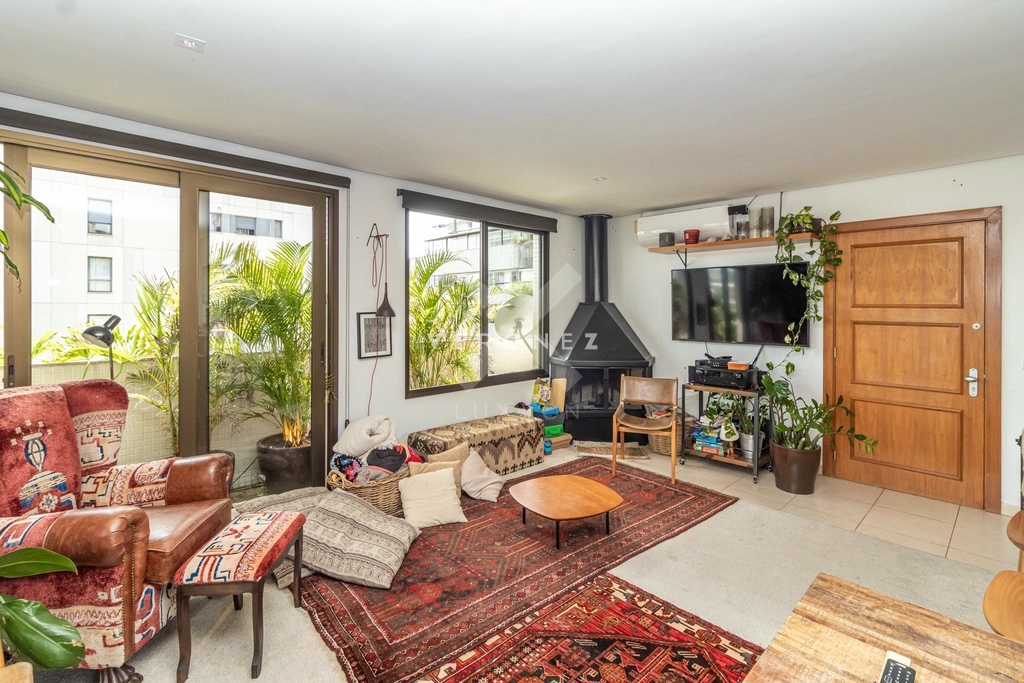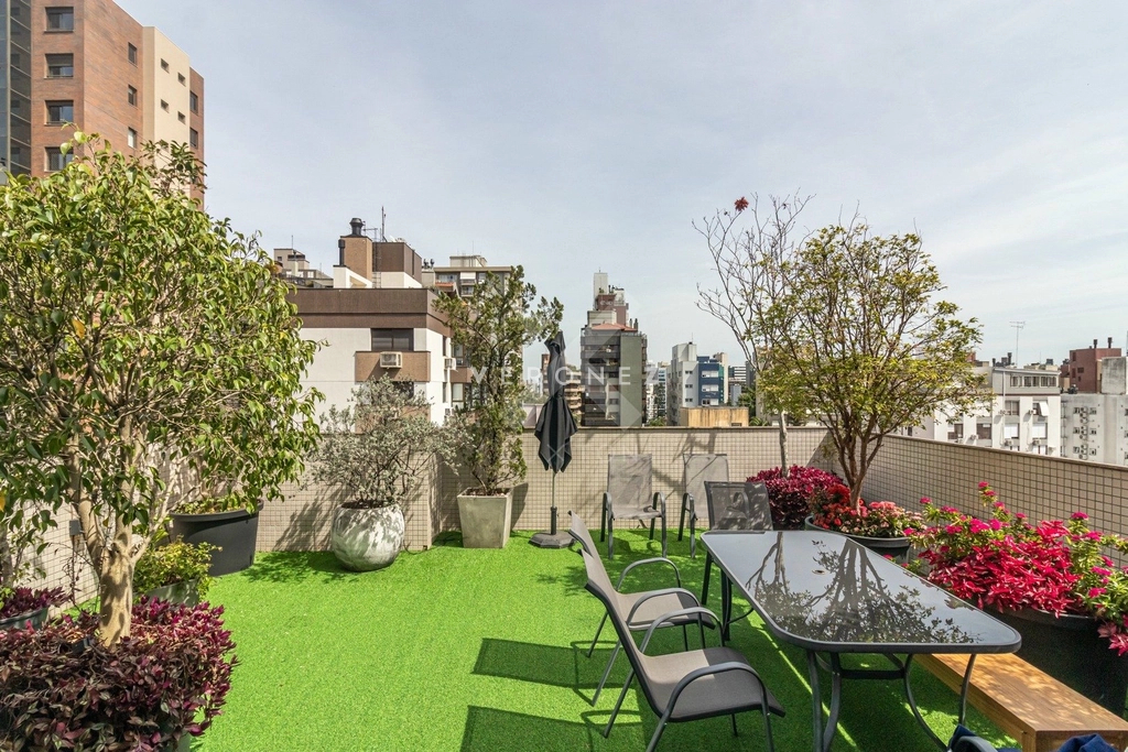 Cobertura no Moinhos de Vento com 185 m2 muito iluminada com 2 dormitórios sendo 1 suíte ampla sala para dois ambientes banheiros com ventilação direta escada confortável e elevador com acesso ao piso superior que conta com estar com área de churrasco espaço para lareira e ampla área externa com vista definida. Preço e disponibilidade do imóvel sujeitos a alteração sem aviso prévio.