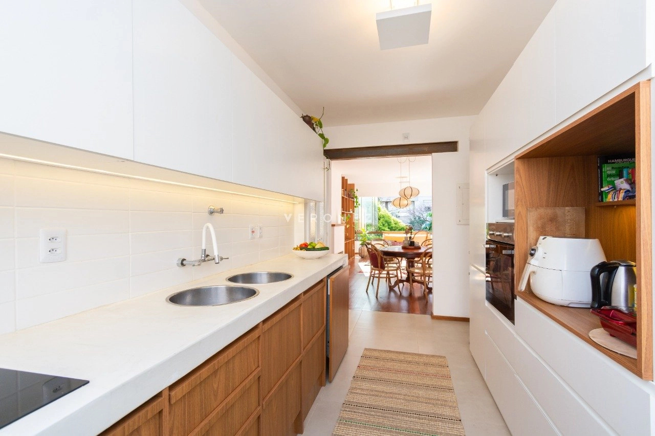 O living é amplo, bem iluminado e arejado, com espaço para 2 ambientes e lareira. Conta ainda com lavabo, cozinha integrada, dependência ou espaço office com banheiro completo, banheiro social, área de serviço separada com churrasqueira e 3 dormitórios, sendo 1 suíte. Os banheiros possuem ventilação natural. O imóvel dispõe de 1 vaga coberta que acomoda 2 carros.
