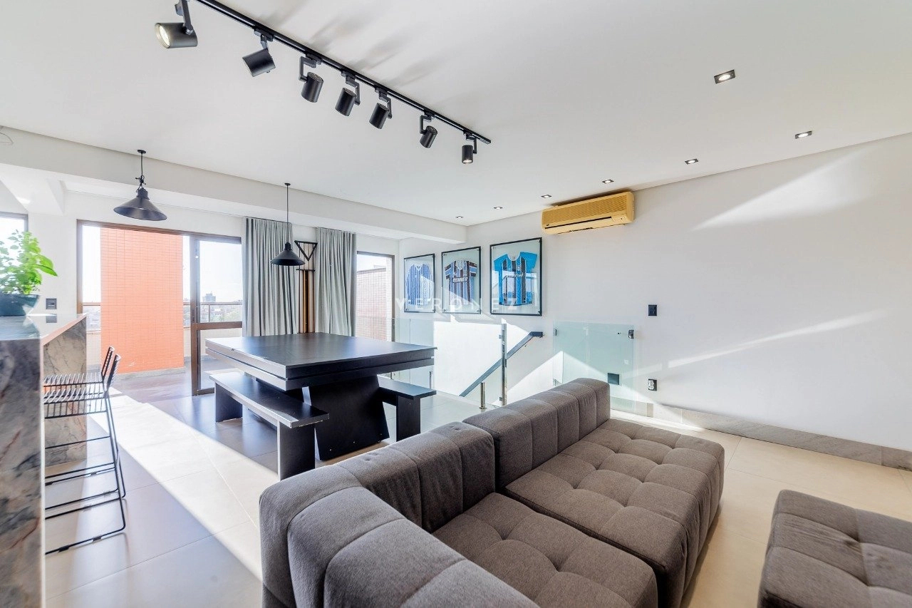 Cobertura duplex totalmente reformada, com 233 m² e 3 dormitórios, atualmente configurados em 1 suíte com closet e um escritório, com fácil reversão para a planta original.