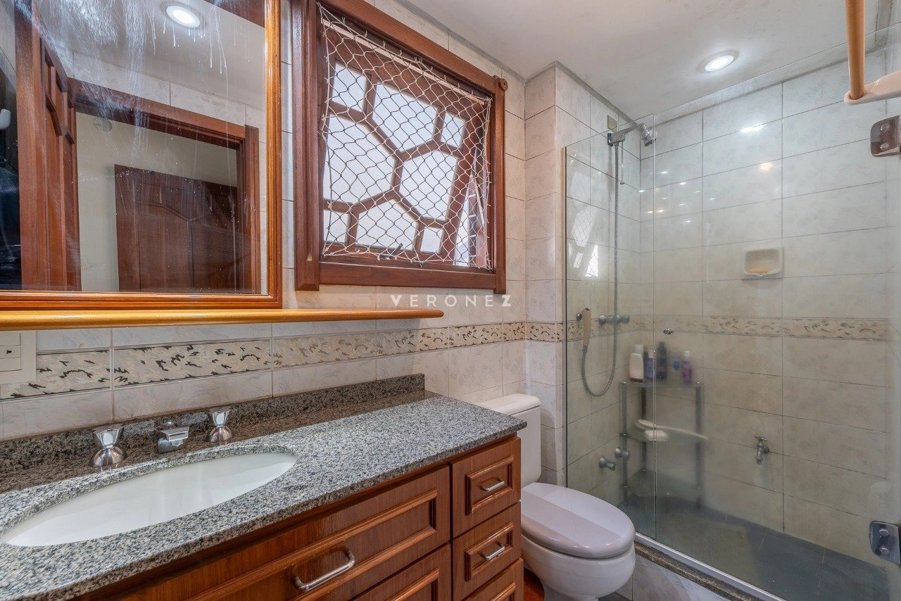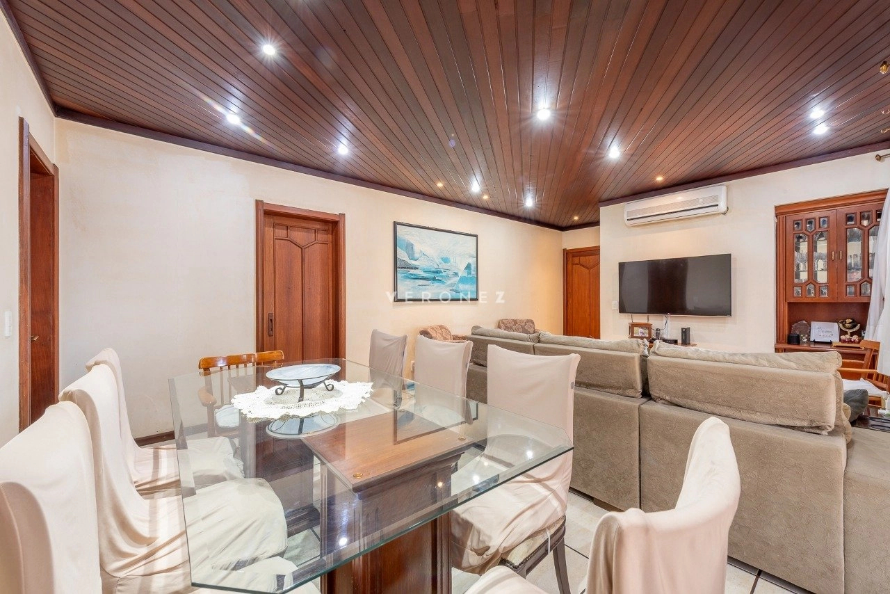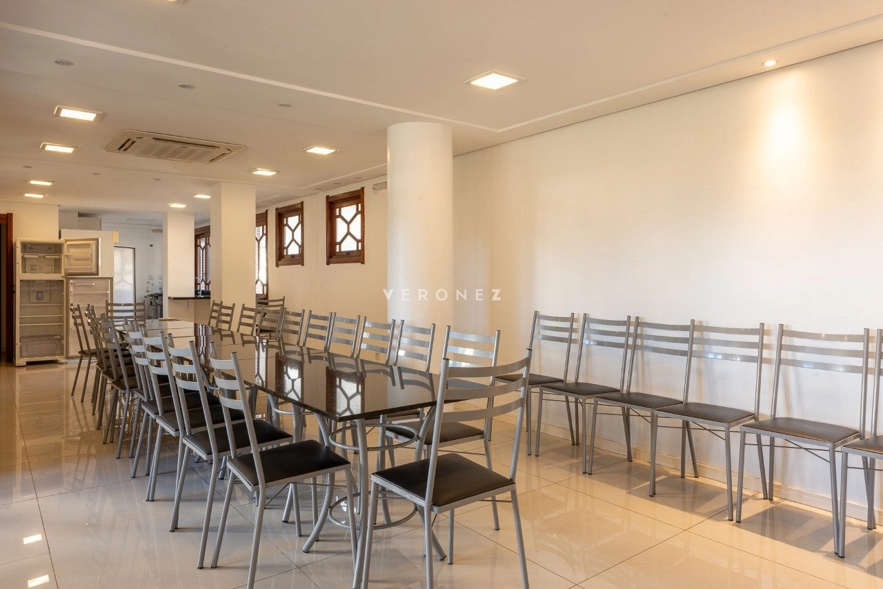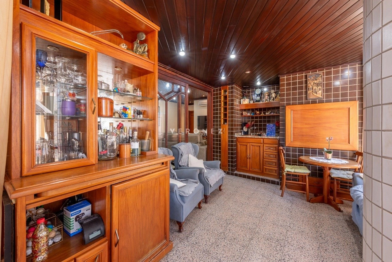 Apartamento semimobiliado com 149 m², 3 dormitórios, sendo 1 suíte, living para 2 ambientes, sacada integrada com churrasqueira, lavabo, banheiro social e cozinha com área de serviço separada, além de dependência de empregada completa. Conta com 2 vagas de garagem individuais.