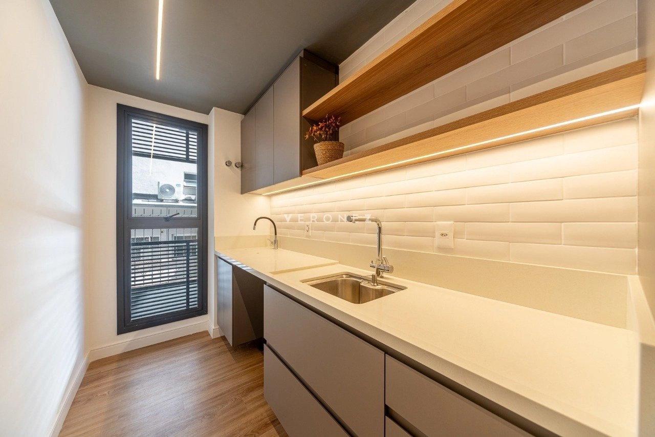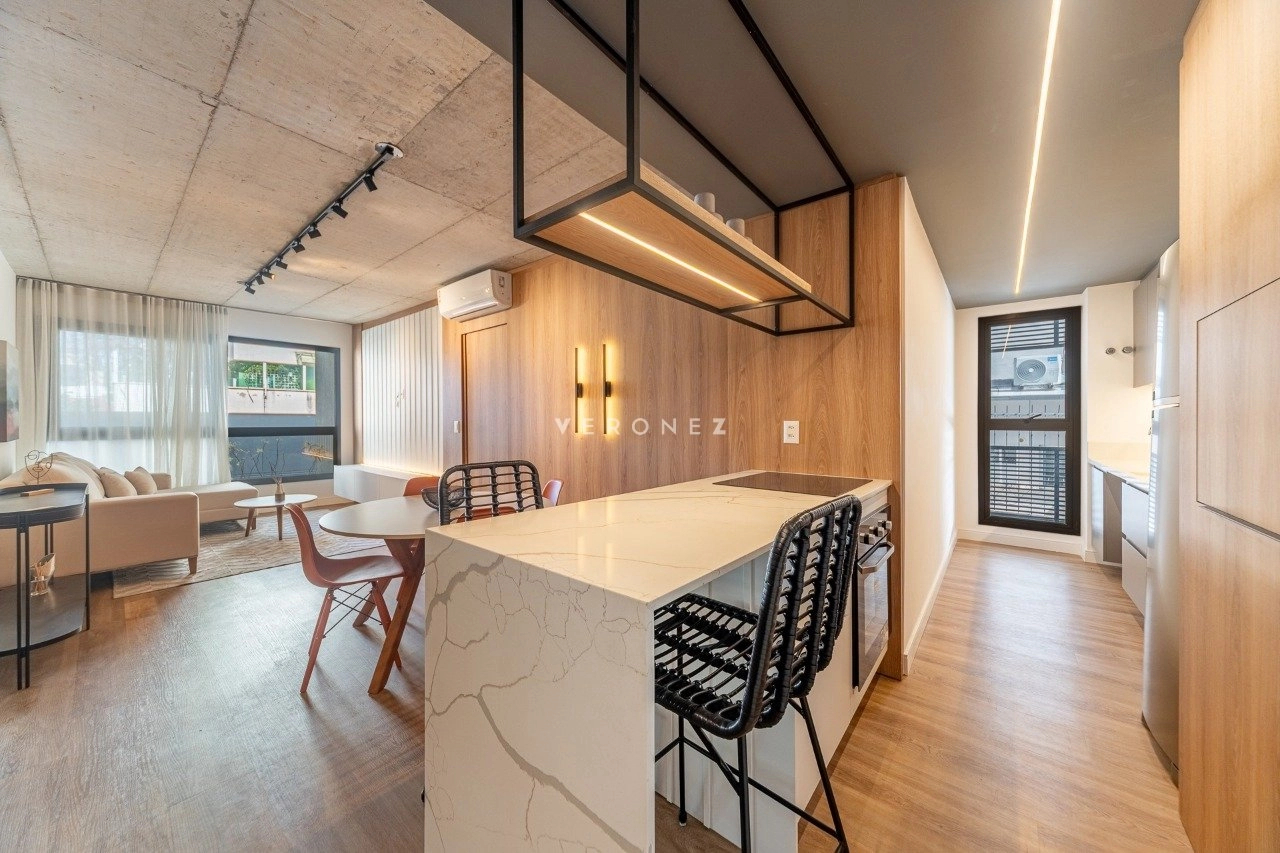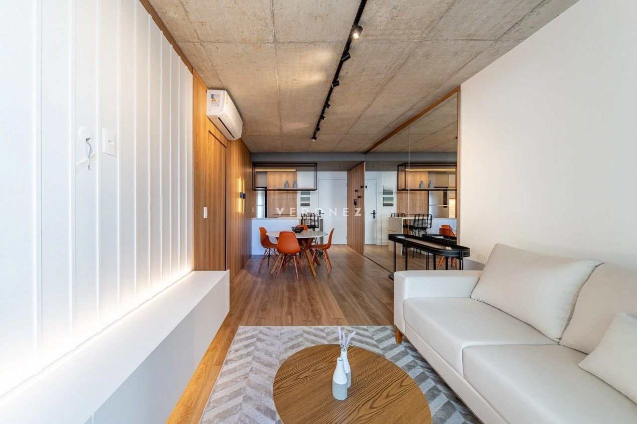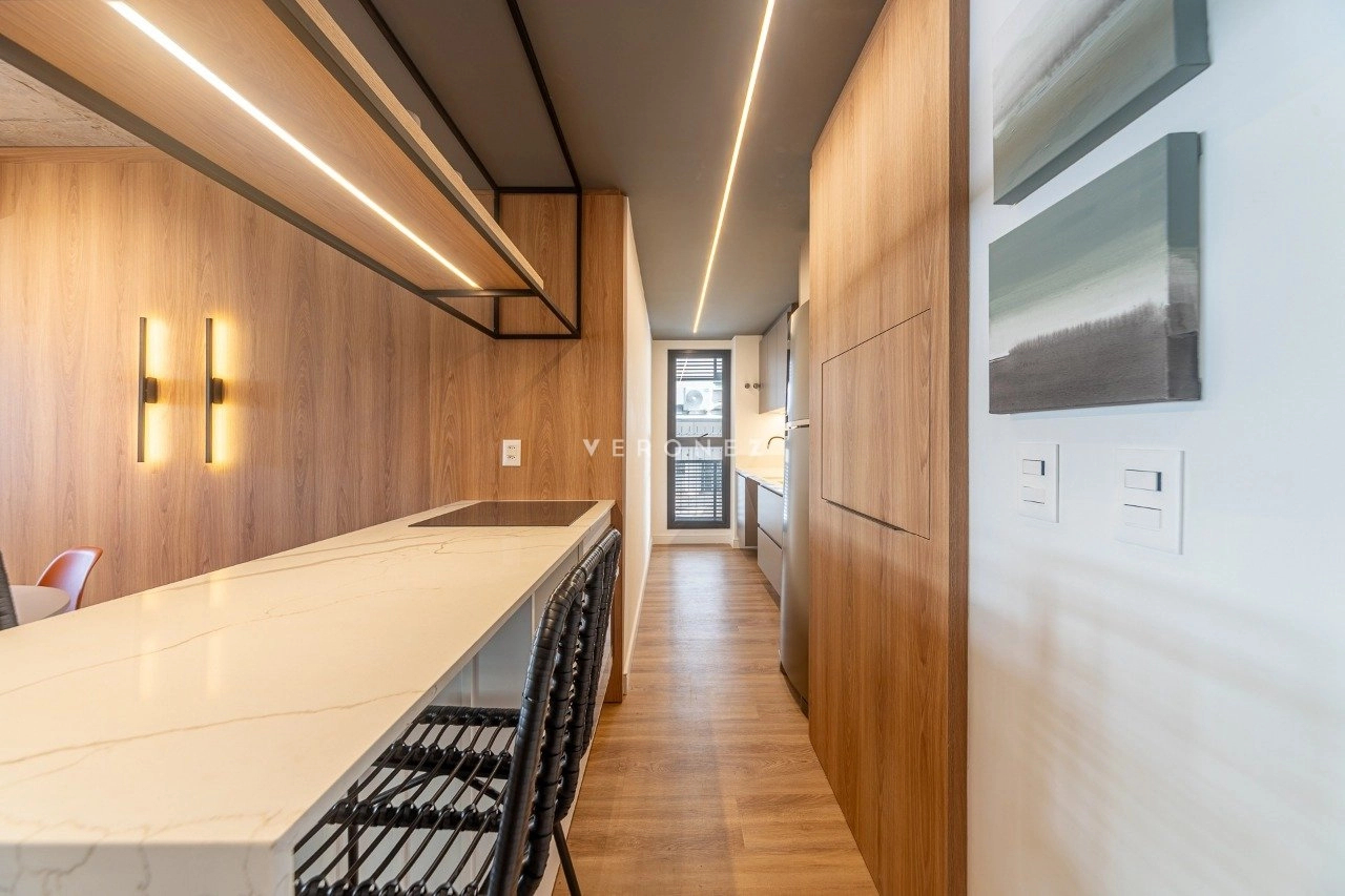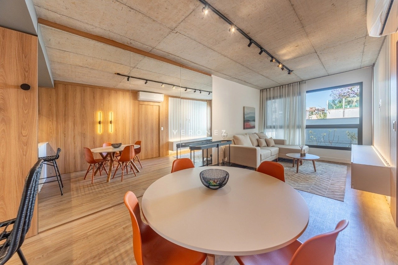 Apartamento totalmente mobiliado por arquitetas, com 67 m², 2 dormitórios, sendo 1 suíte, living para 2 ambientes, cozinha com churrasqueira e 1 vaga de garagem com depósito.