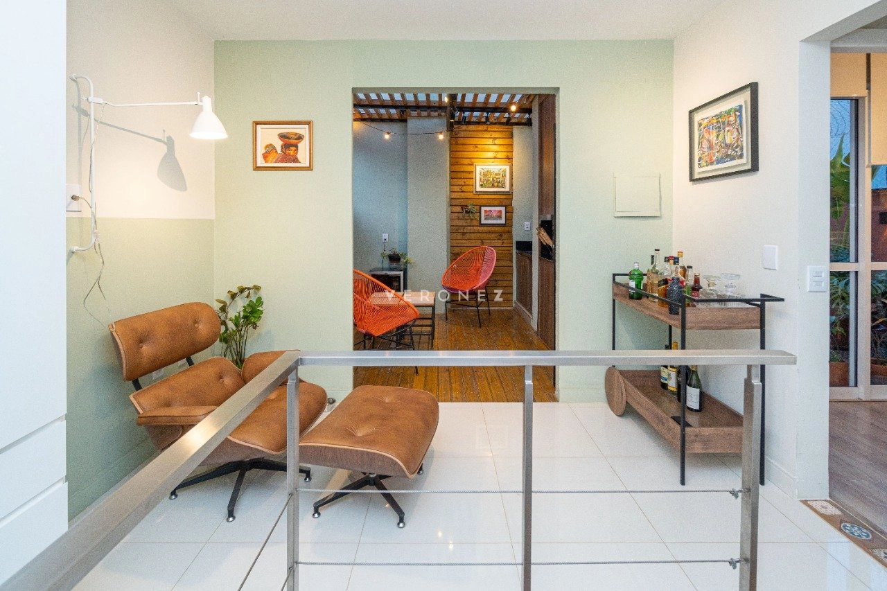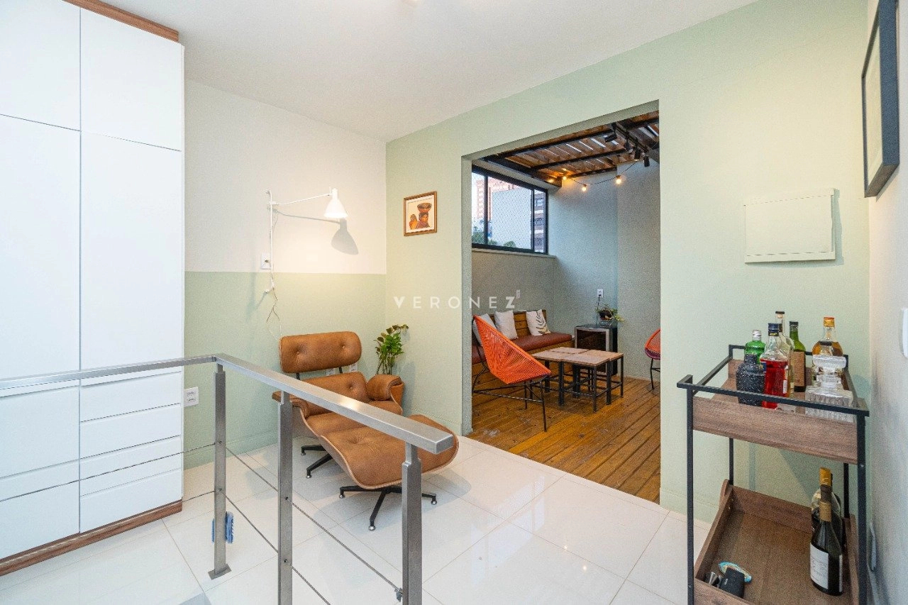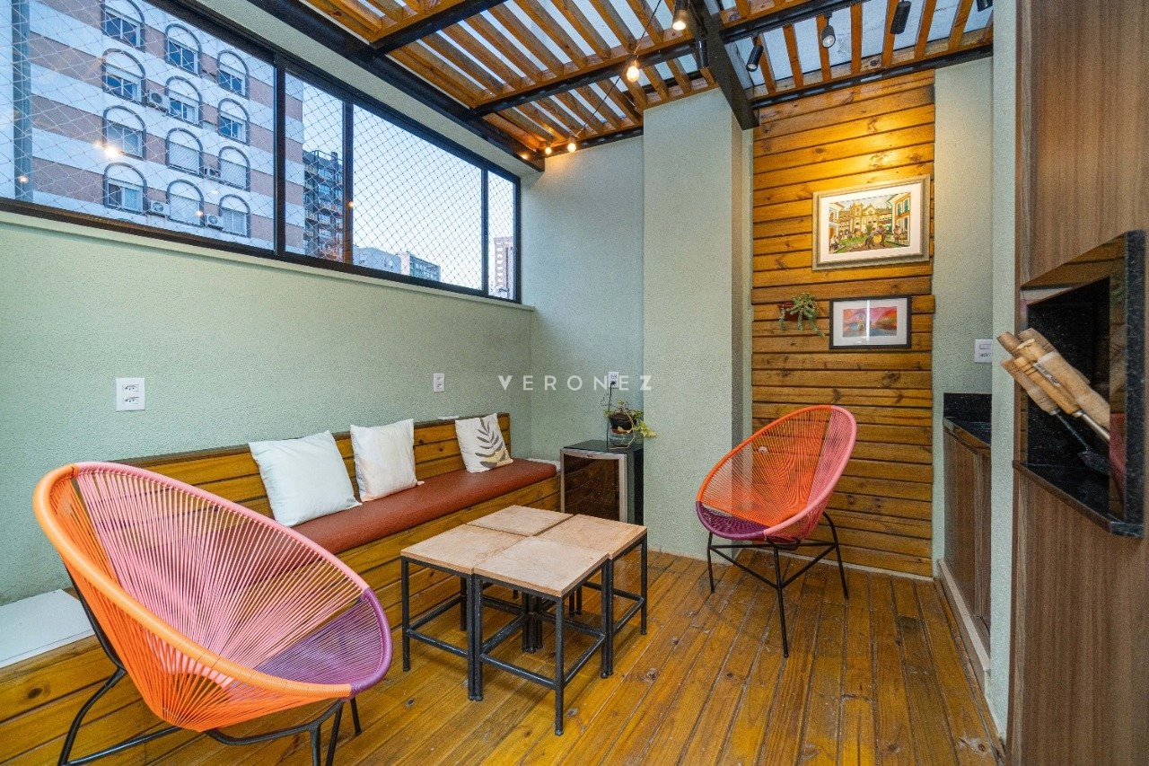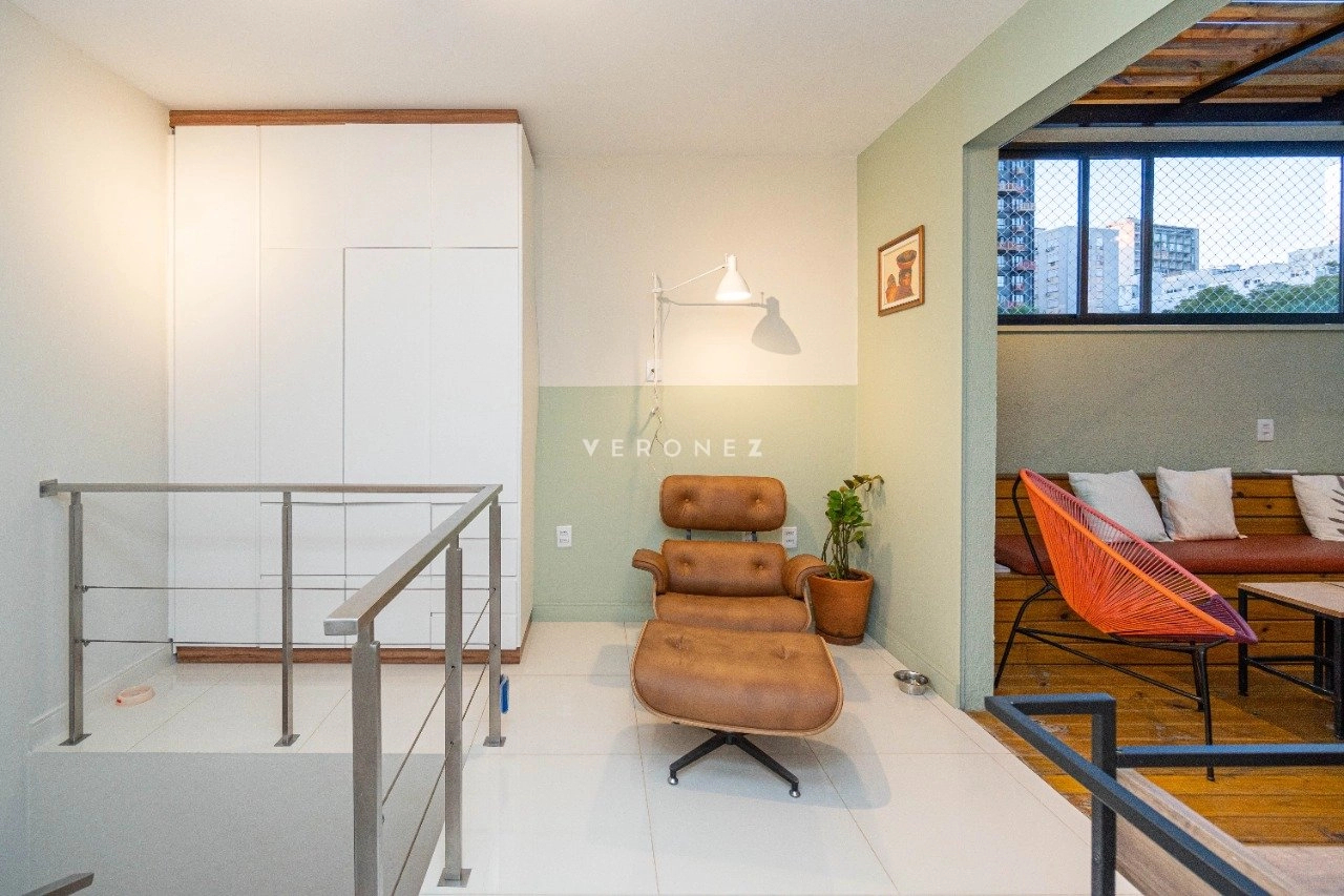 Cobertura semimobiliada, com 103 m², decorada por arquitetos, silenciosa e com churrasqueira. Possui 2 dormitórios, sendo 1 suíte muito ampla, com closet completo. Conta ainda com 1 vaga de garagem.