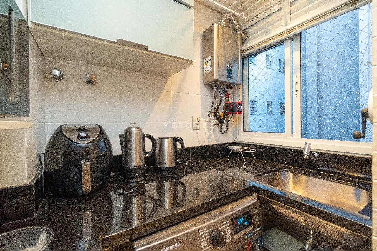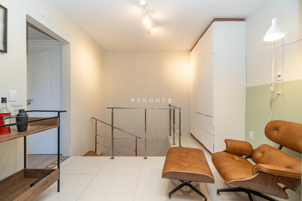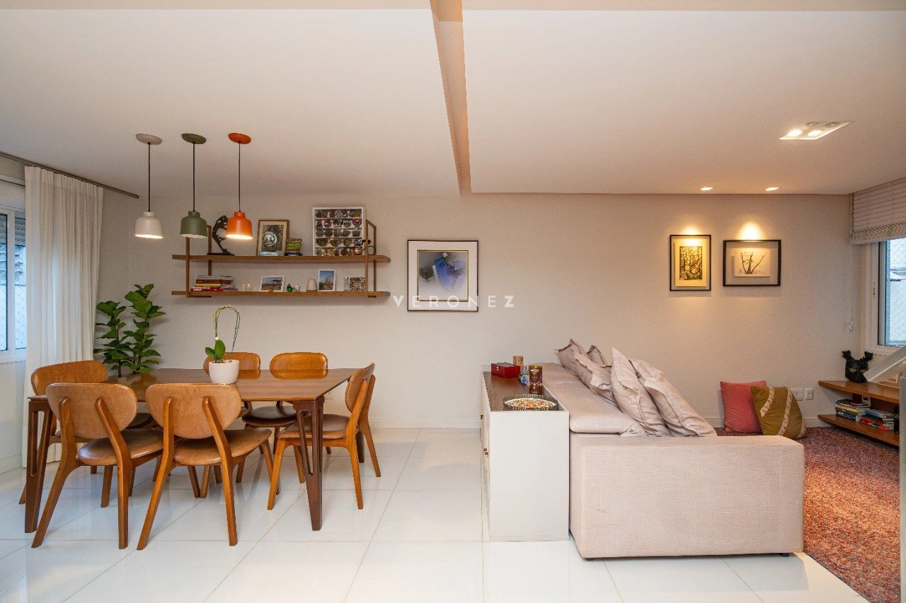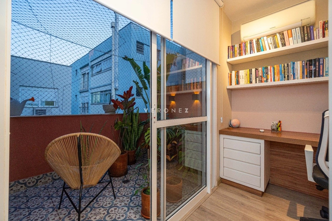 Cobertura semimobiliada, com 103 m², decorada por arquitetos, silenciosa e com churrasqueira. Possui 2 dormitórios, sendo 1 suíte muito ampla, com closet completo. Conta ainda com 1 vaga de garagem.
