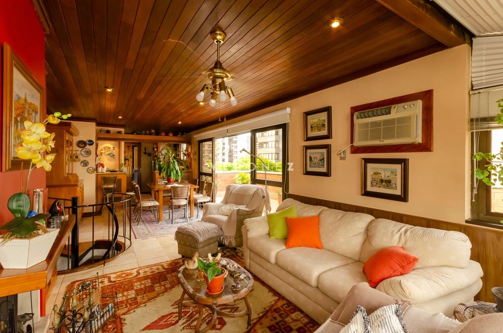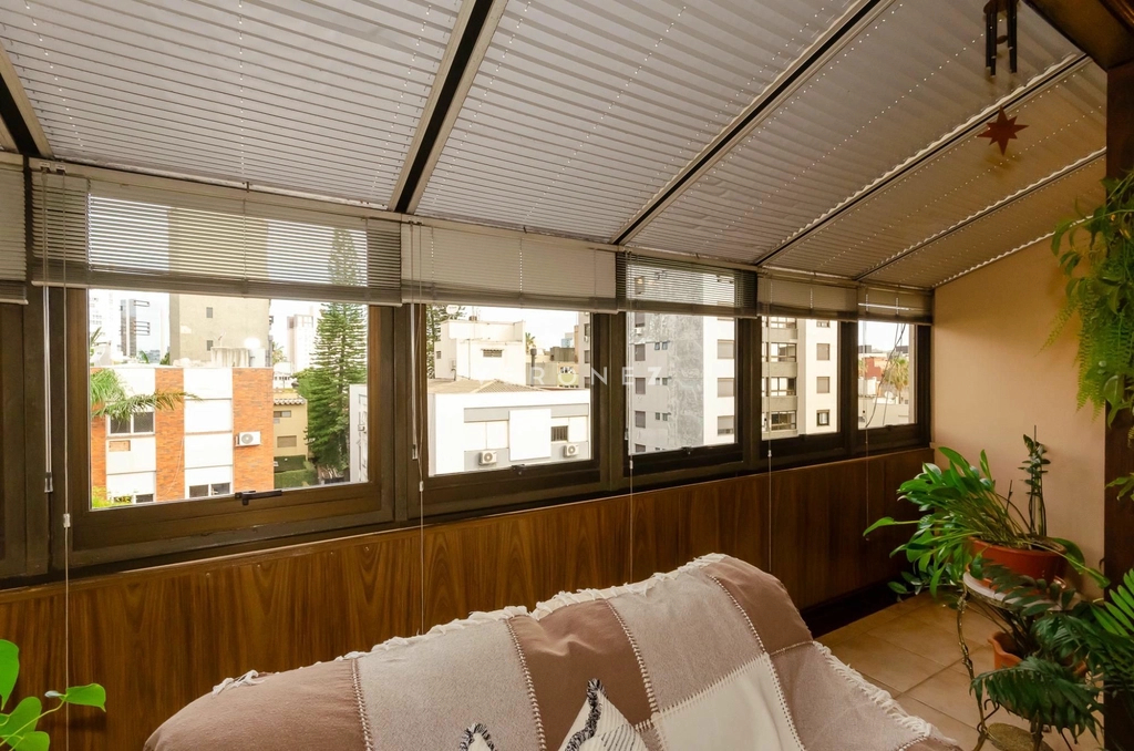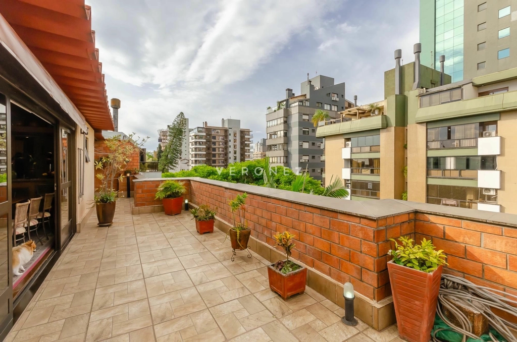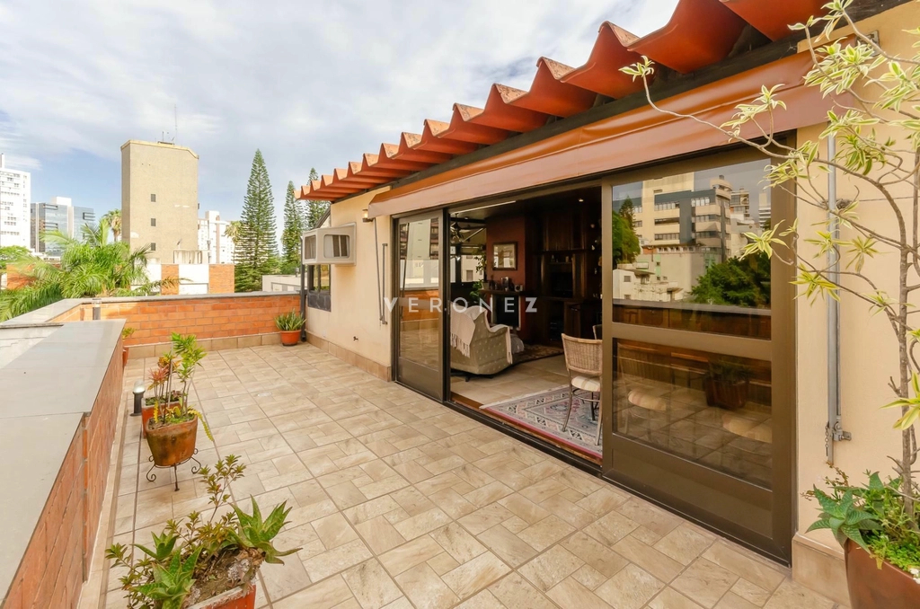 Cobertura com 199,63 m2 no bairro Petrópolis em Porto Alegre, ensolarada e com vista verde permanente, próxima à Praça da Encol. No primeiro pavimento possui três dormitórios sendo uma suíte, living para dois ambientes, copa e cozinha, banheiro social, área de serviço separada e dependência completa com banheiro auxiliar, duas vagas de garagem individuais e cobertas. No pavimento superior conta com amplo living para três ambientes com churrasqueira gourmet, depósito, área de serviço fechada e terraço ensolarado com vista para a cidade. O edifício de esquina em rua arborizada possui elevador, salão de festas com churrasqueira, espaço fitness, interfone, cerca elétrica e portão eletrônico. Localização privilegiada próxima à Praça da Encol e ao Grêmio Náutico União na Nilo Peçanha, em uma das ruas mais desejadas do bairro Petrópolis. Preço e disponibilidade do imóvel sujeitos a alteração sem aviso prévio.