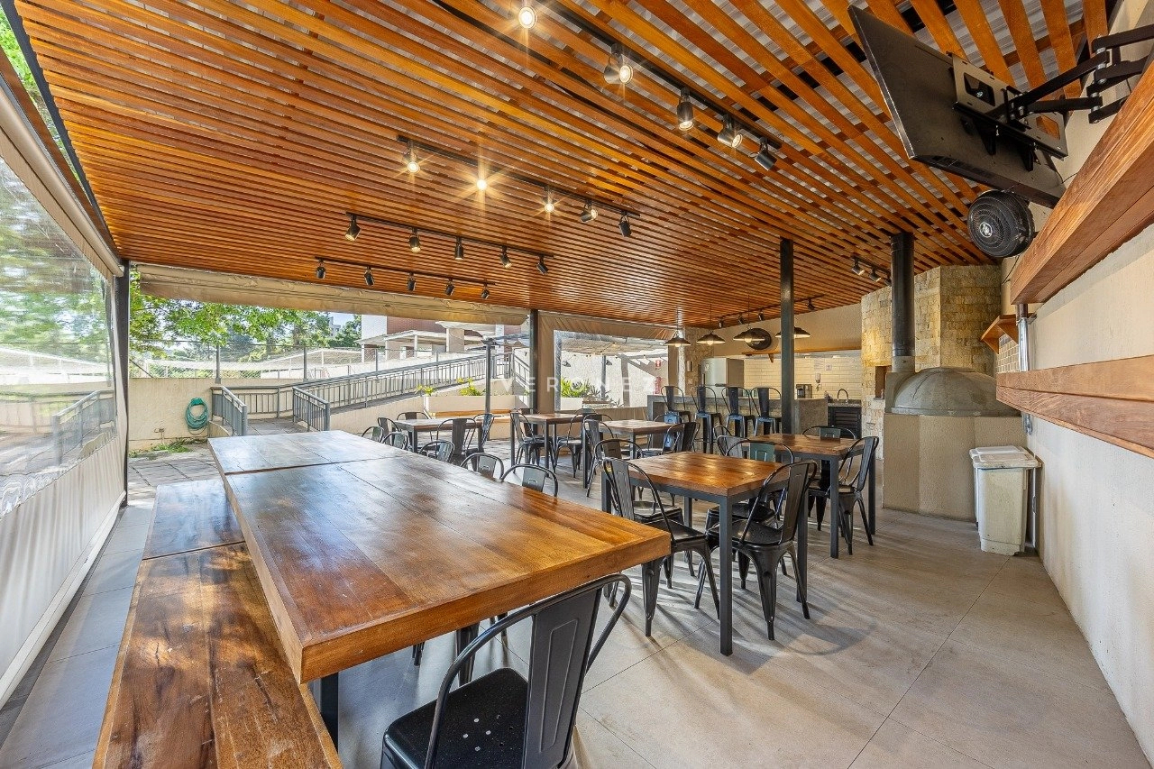 O imóvel conta com living para 2 ambientes, churrasqueira integrada, cozinha com móveis planejados e área de serviço separada. Na área íntima, estão os 3 dormitórios, sendo 1 suíte.