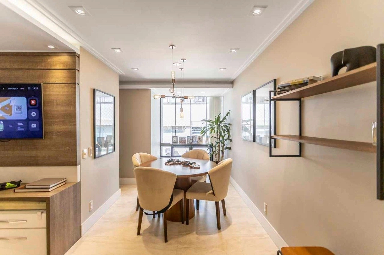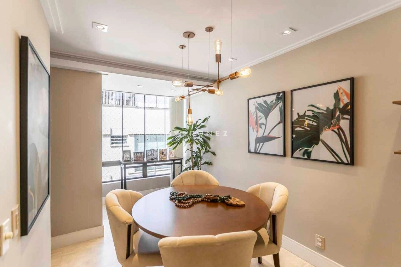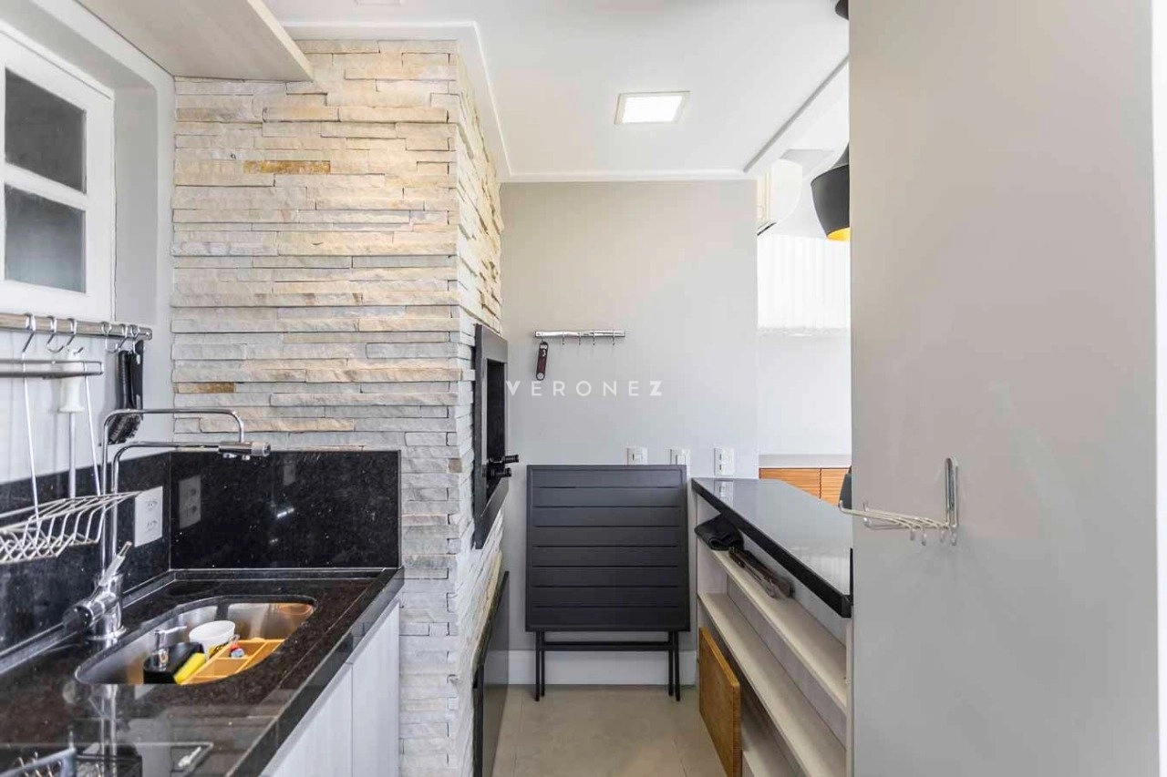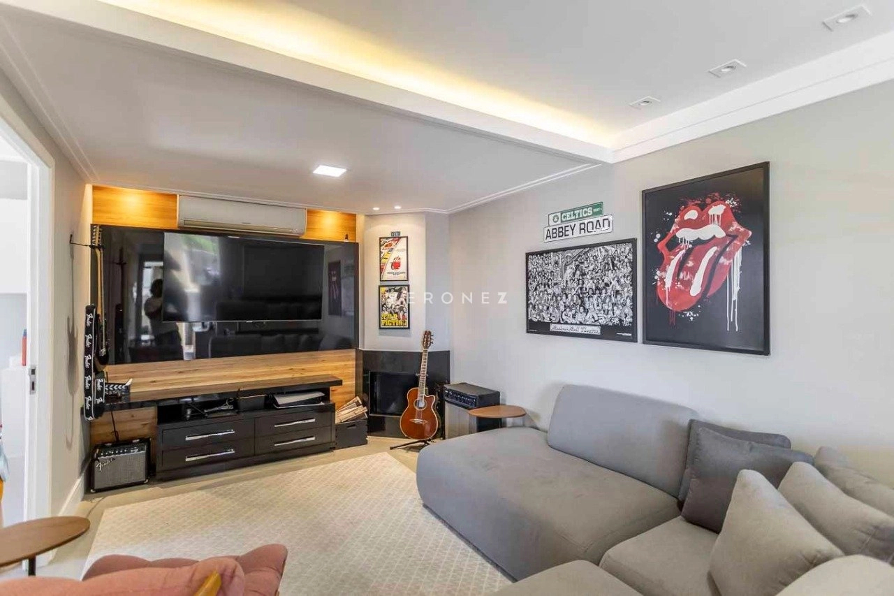 Cobertura com 178 m², 3 quartos transformados em 2, sendo 1 suíte com closet e sacada, com possibilidade de reversão. No pavimento inferior, o imóvel conta com amplo living para 2 ambientes, lavabo, cozinha mobiliada e área de serviço.