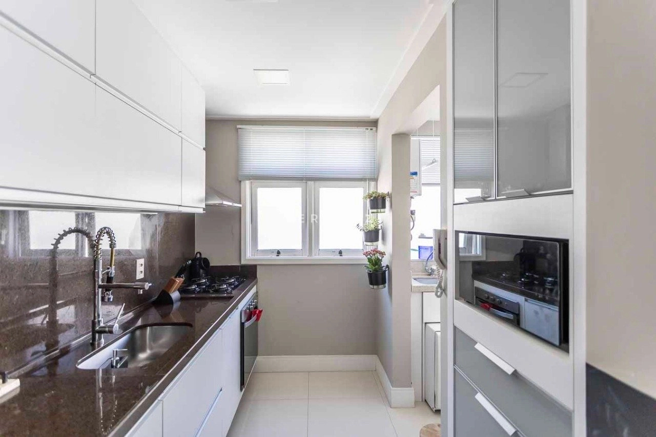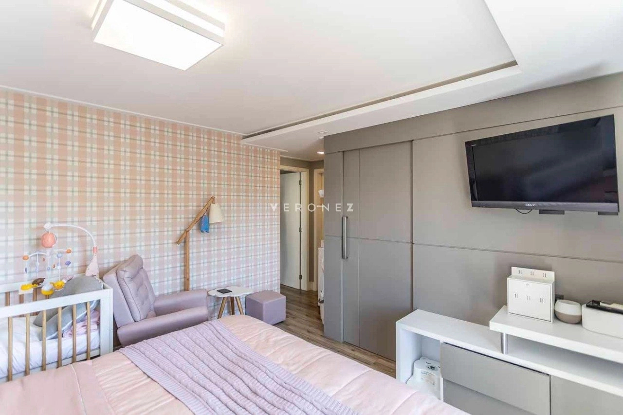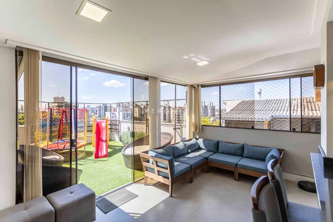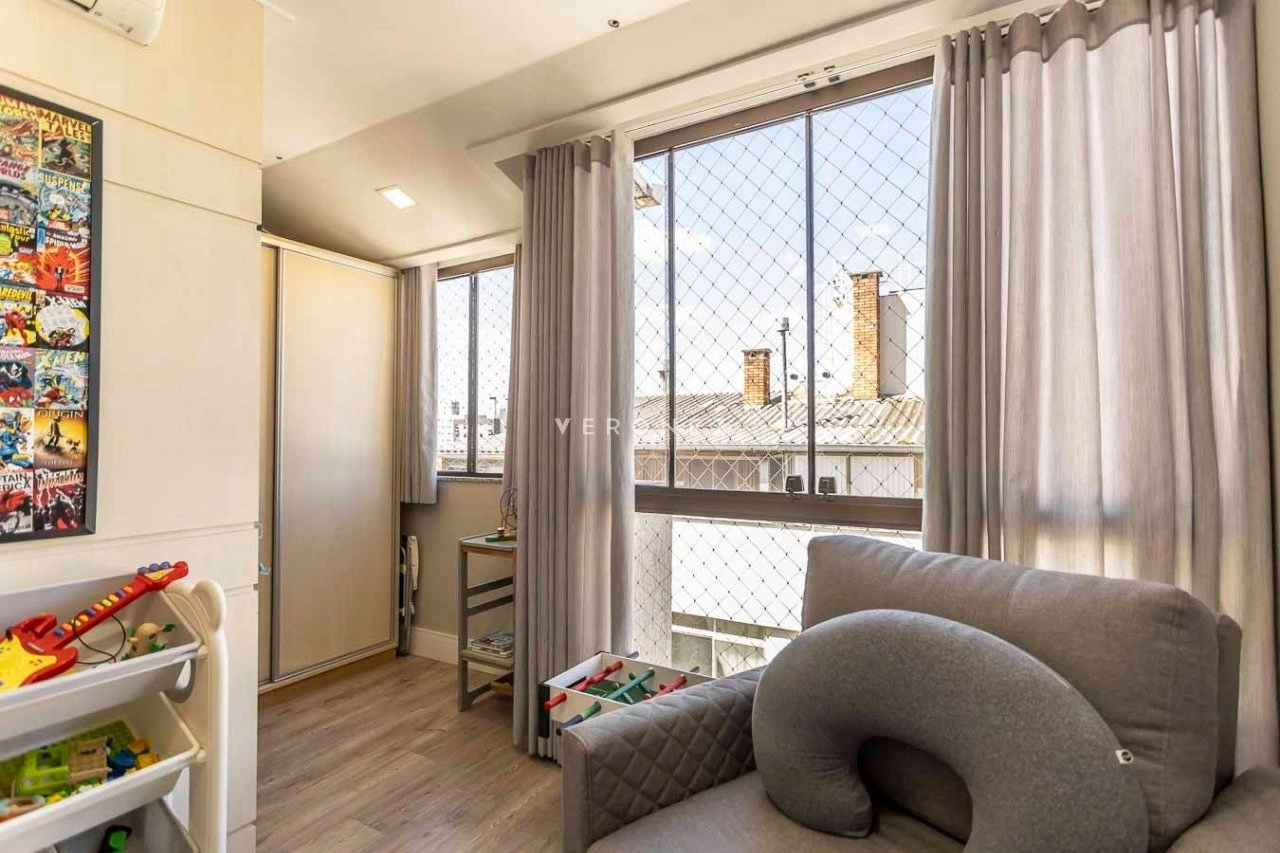 Cobertura com 178 m², 3 quartos transformados em 2, sendo 1 suíte com closet e sacada, com possibilidade de reversão. No pavimento inferior, o imóvel conta com amplo living para 2 ambientes, lavabo, cozinha mobiliada e área de serviço.