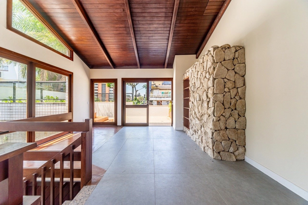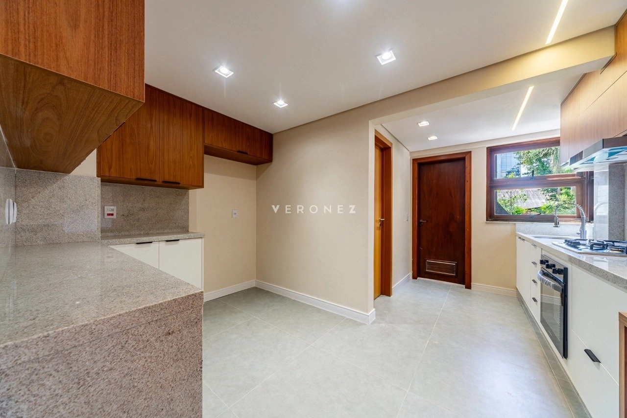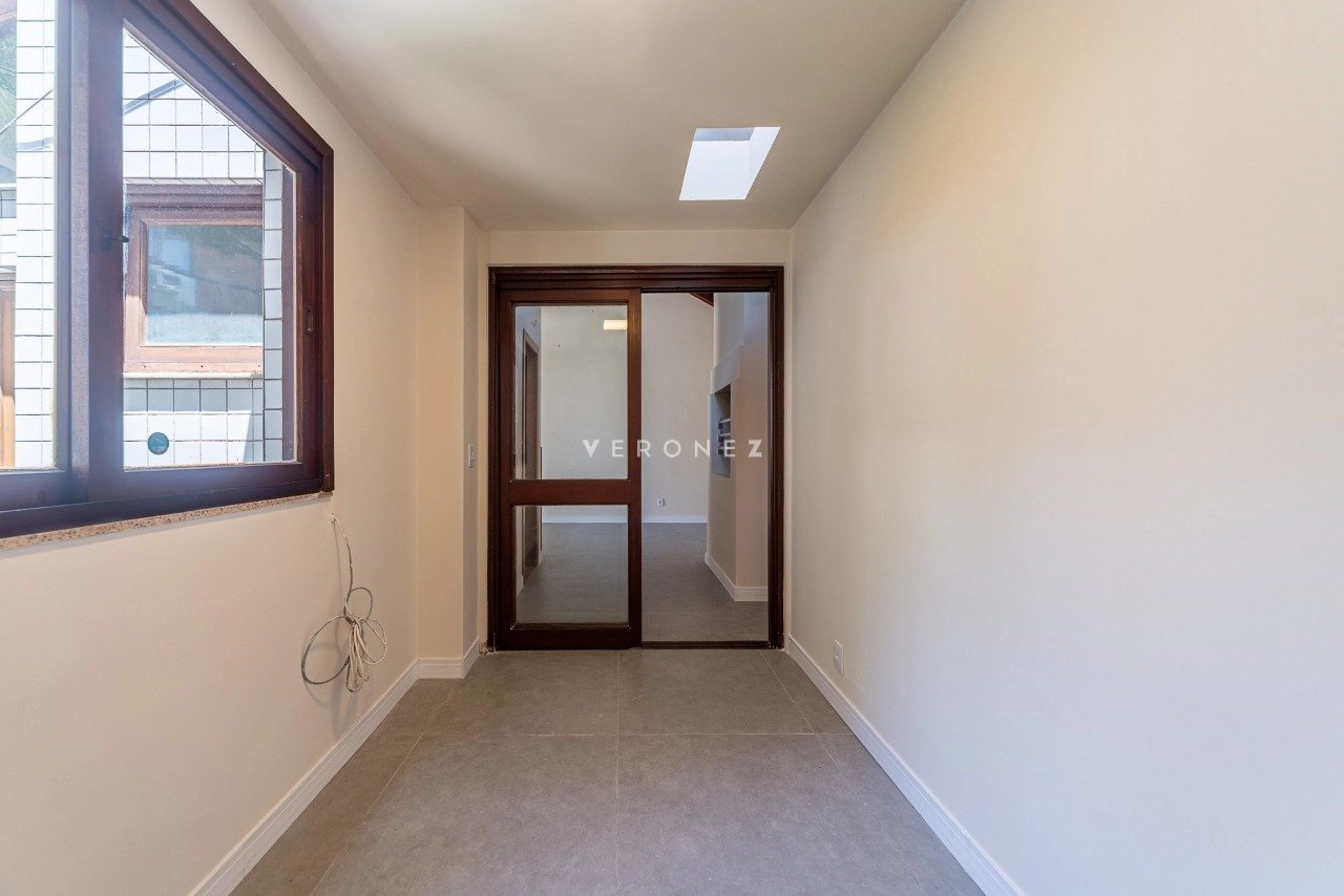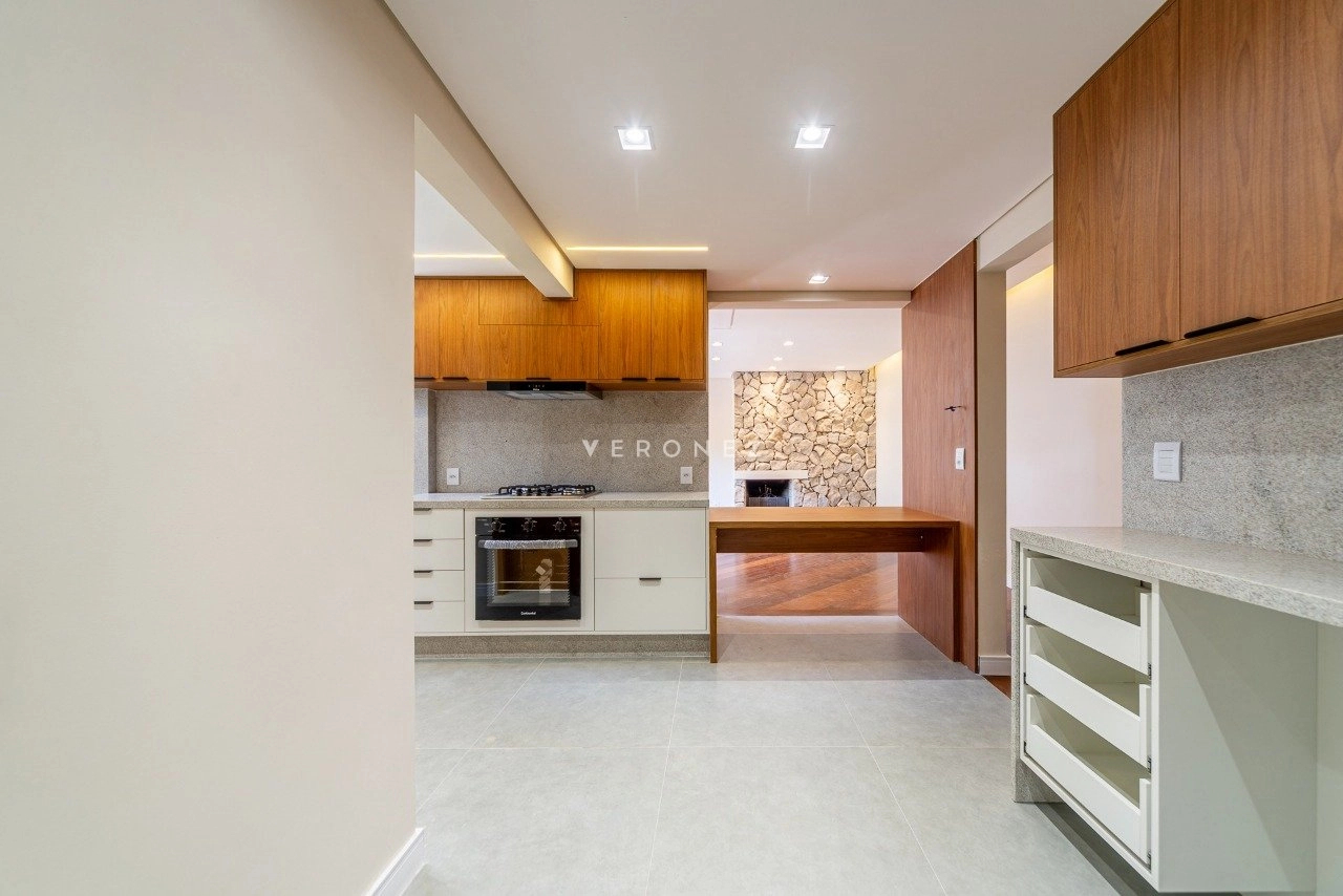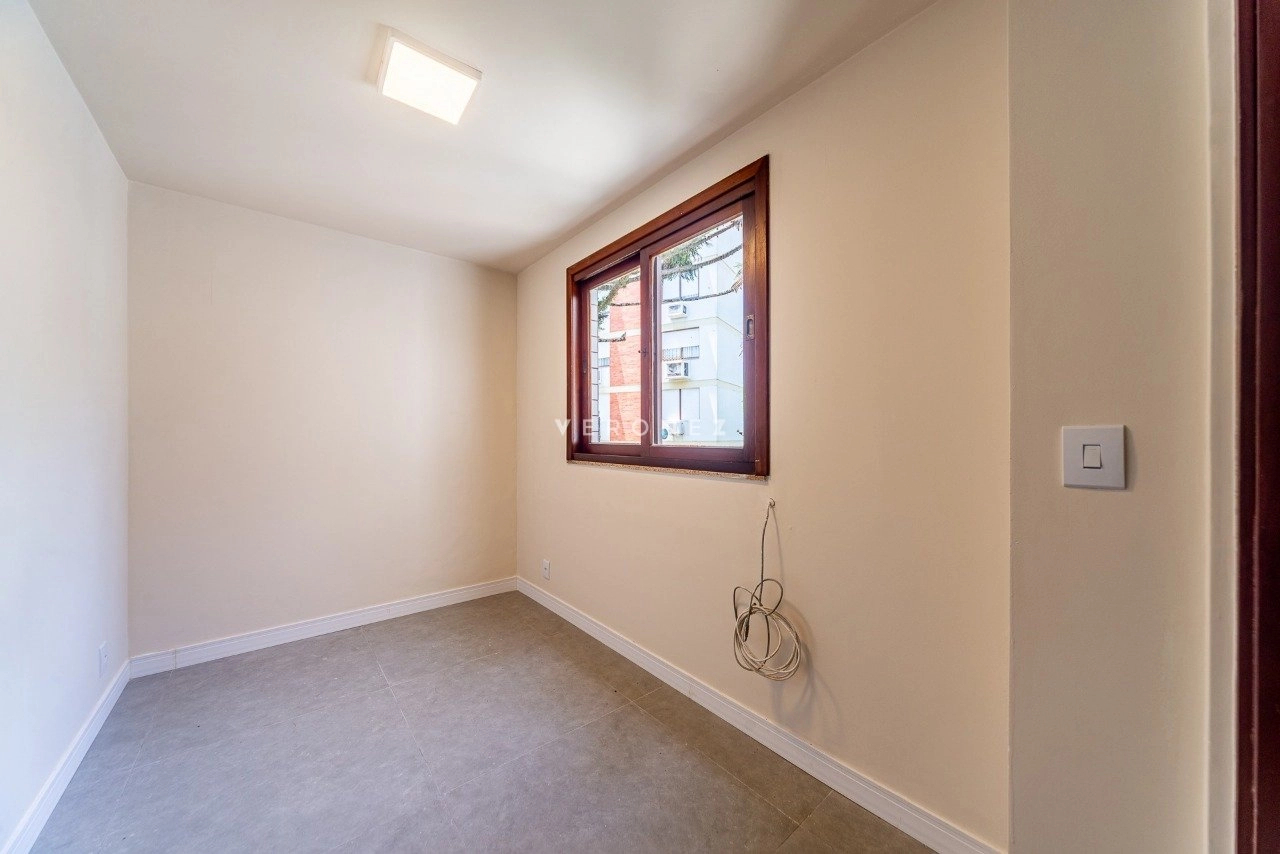 Cobertura com 198 m², reformada, 2 dormitórios e 2 suítes. No primeiro pavimento, conta com living com lareira, cozinha americana planejada com eletrodomésticos, lavanderia separada e banheiro auxiliar. As suítes possuem vista para o verde e recebem sol da manhã.