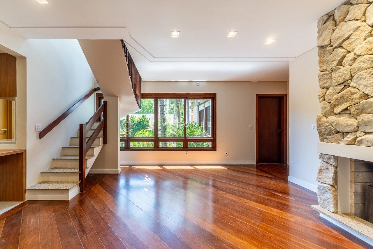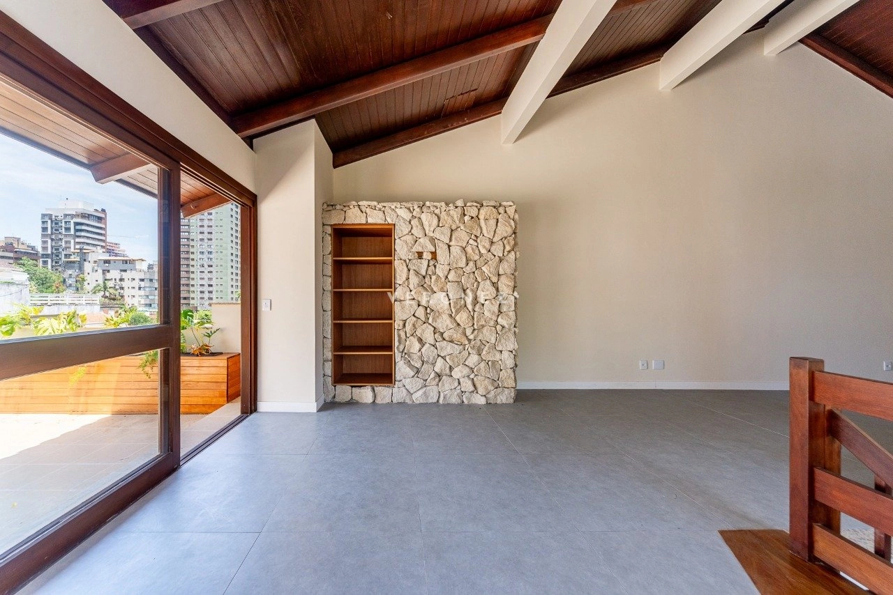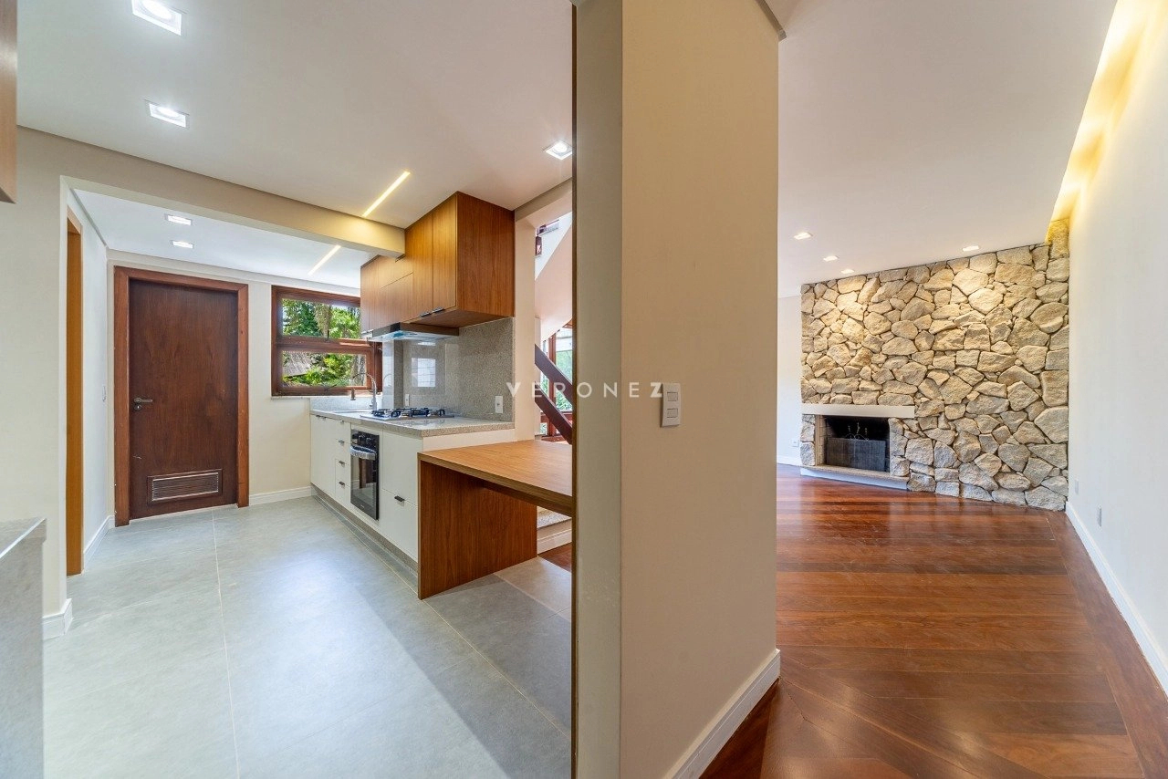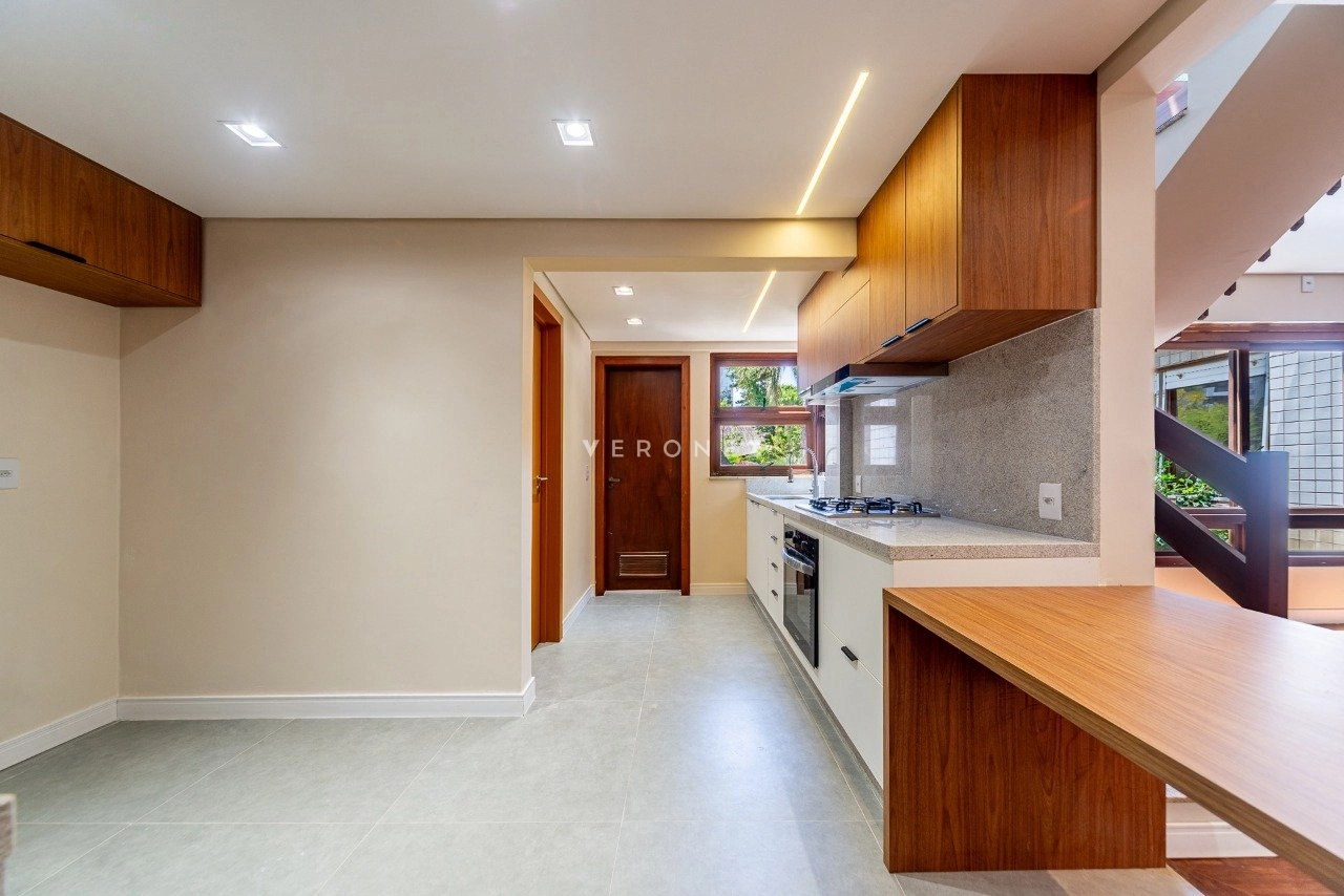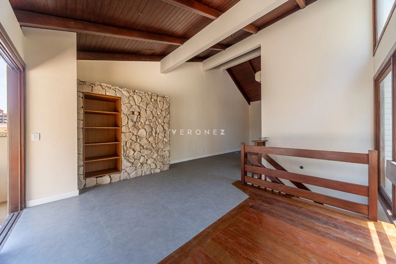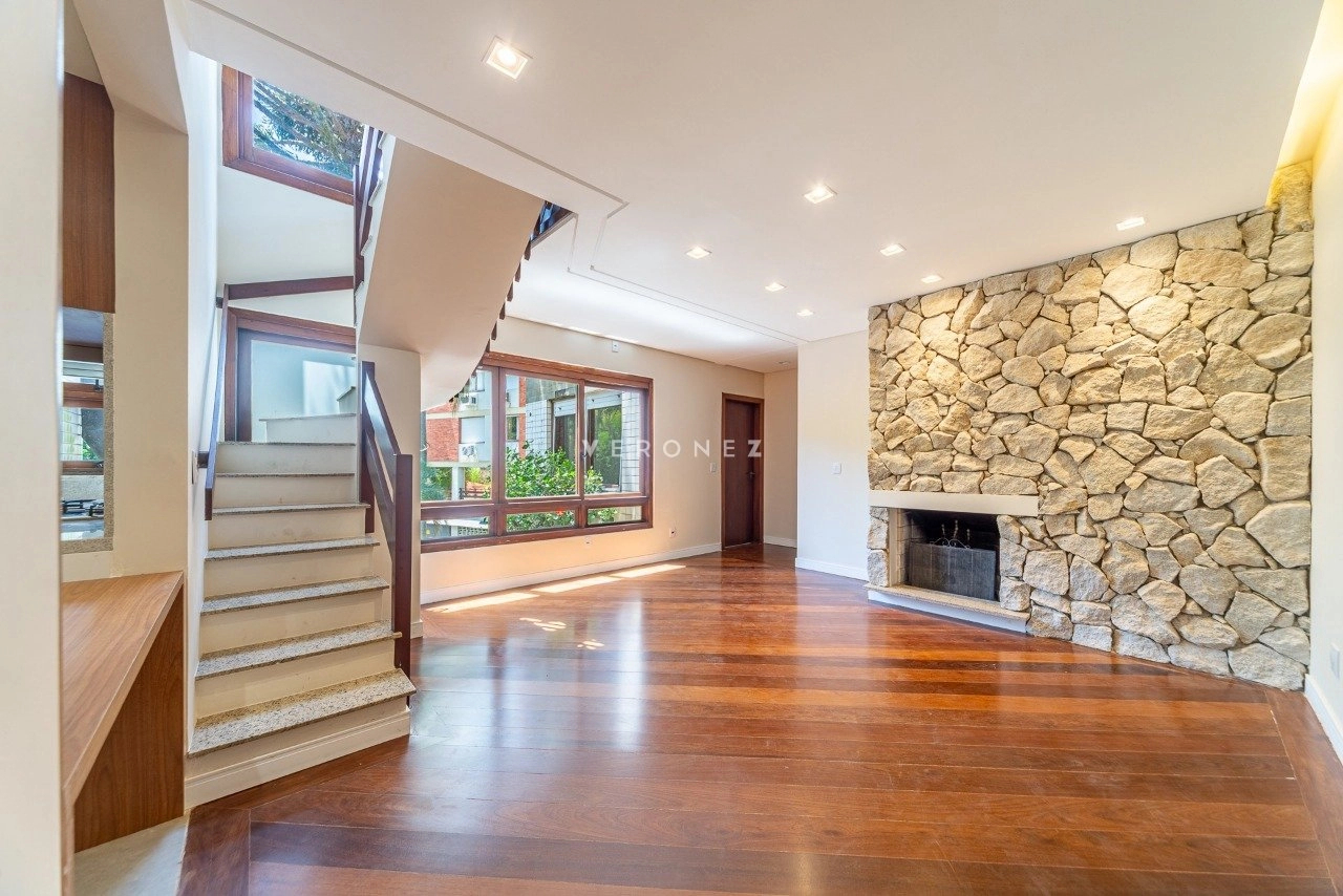 Cobertura com 198 m², reformada, 2 dormitórios e 2 suítes. No primeiro pavimento, conta com living com lareira, cozinha americana planejada com eletrodomésticos, lavanderia separada e banheiro auxiliar. As suítes possuem vista para o verde e recebem sol da manhã.