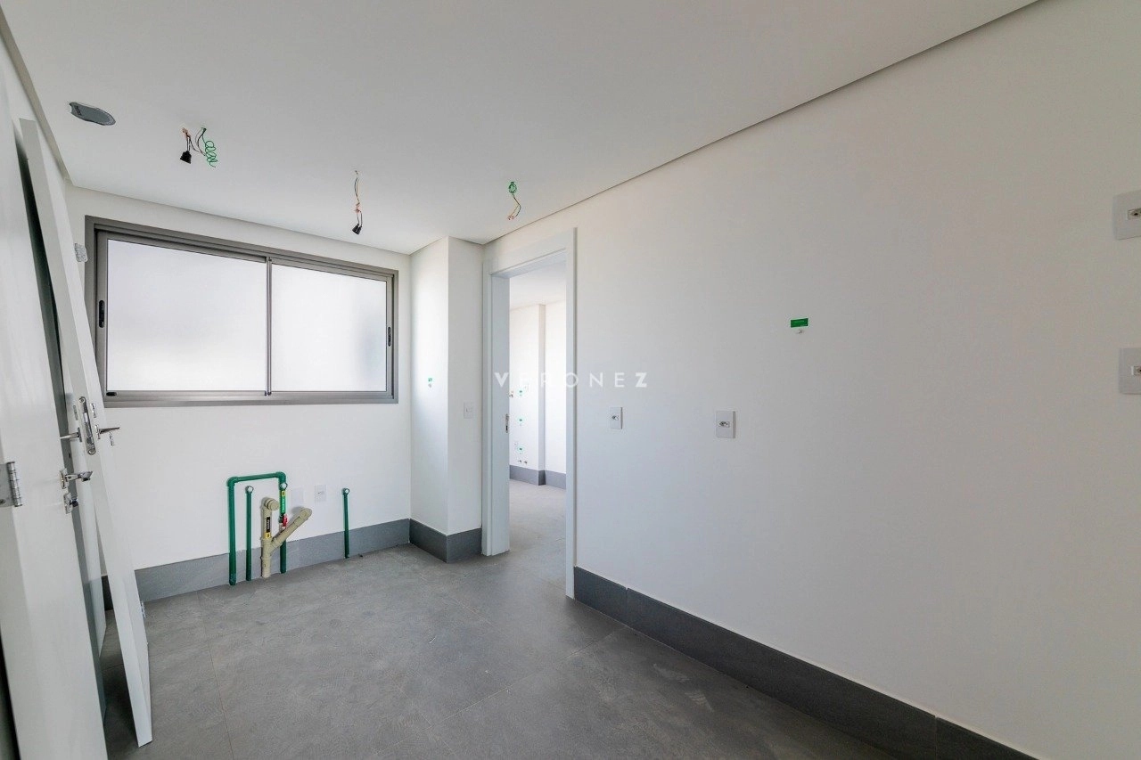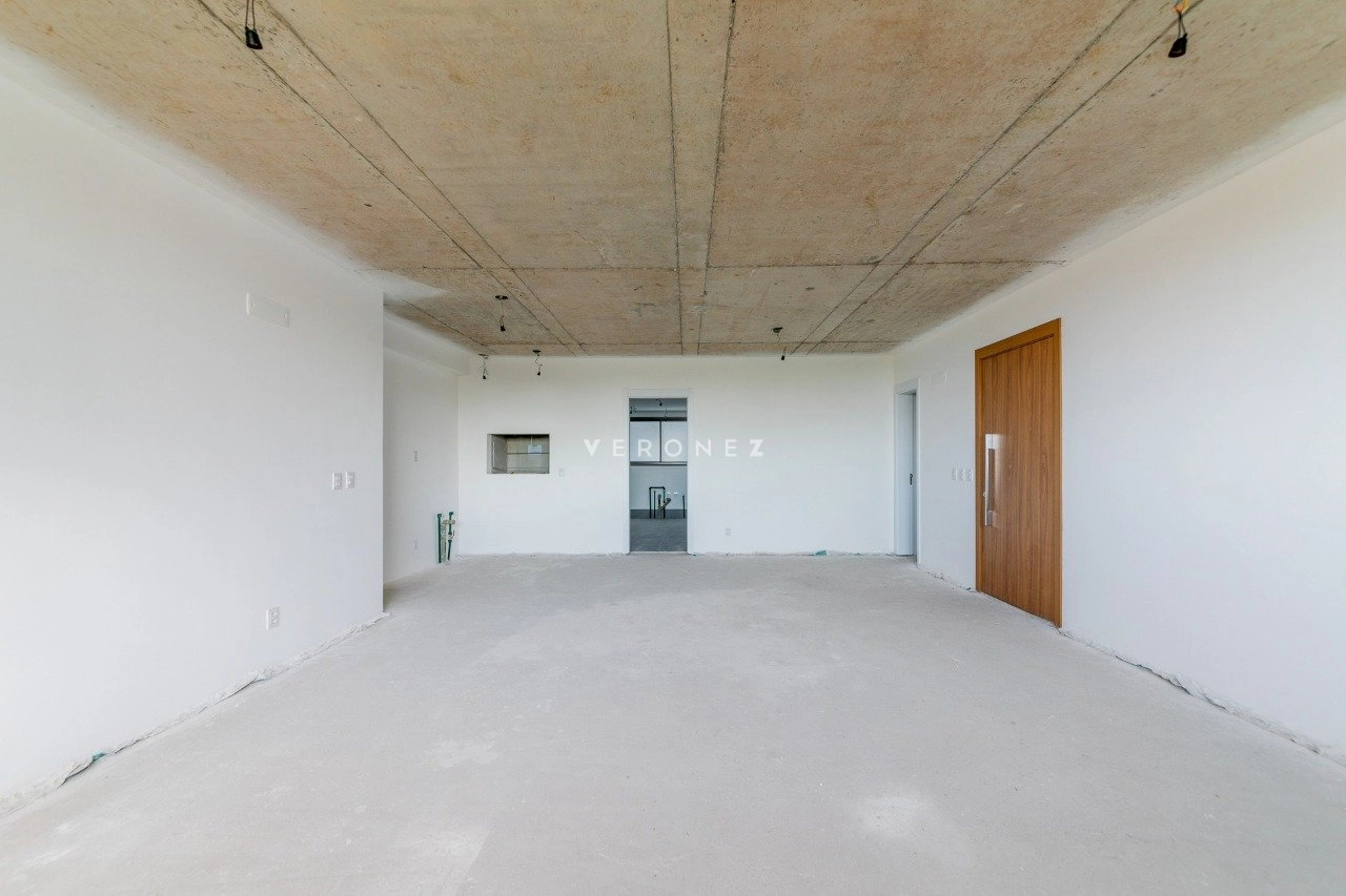 Apartamento com 156 m² privativos, 3 suítes, living para 2 ambientes, lareira, espaço gourmet, lavabo, cozinha com área de serviço separada, dependência de empregada e banheiro auxiliar.