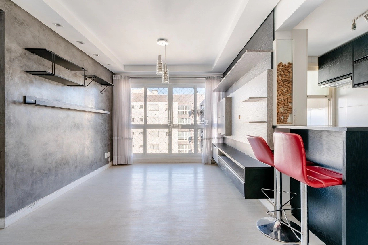 Apartamento com 67 m² privativos, 2 dormitórios, sendo 1 suíte. Possui living integrado à cozinha com churrasqueira, área de serviço separada, ótima iluminação natural com sol da manhã, além de estar em andar alto. Conta ainda com 1 vaga de garagem coberta.