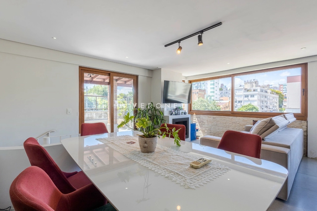 Cobertura reformada com 131m² privativos, 2 dormitórios, banheiro social e 2 lavabos no coração do Higienópolis. Este duplex oferece excelente posição solar e uma planta funcional que traz integração, conforto e praticidade para o dia a dia. No primeiro pavimento, você encontra dois dormitórios, banheiro social, sala de estar, lavabo, cozinha americana e uma lavanderia separada com amplo espaço de dependência de empregada. Tudo pensado para proporcionar organização e fluidez aos ambientes. No andar superior, um espaço perfeito para receber. Living amplo para dois ambientes, lareira, área gourmet com churrasqueira, lavabo de apoio e um terraço generoso, com possibilidade de instalação de jacuzzi, criando um ambiente ideal para convivência e momentos especiais. A cobertura conta ainda com uma vaga de garagem. O condomínio é enxuto, possui elevador, portão eletrônico e oferece a segurança de um prédio protegido por muros. A localização é privilegiada, próxima à Avenida Carlos Gomes e ao Zaffari Higienópolis, garantindo acesso rápido a serviços, comércio e conveniências da região. Uma oportunidade única de morar com estilo, conforto e privacidade em uma das áreas mais desejadas do bairro. Agende sua visita! Preço e disponibilidade do imóvel sujeitos a alteração sem aviso prévio.