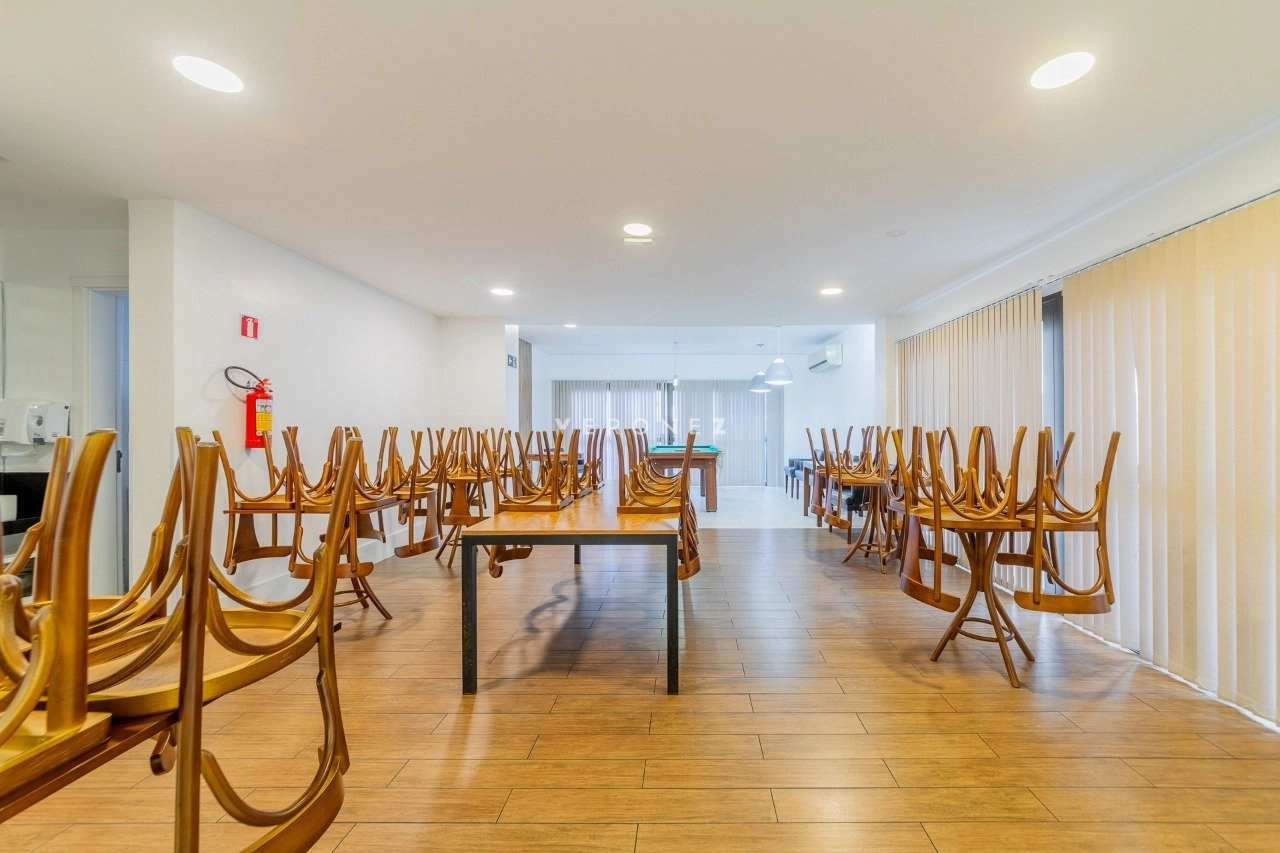 O condomínio, além de contar com elevador, oferece infraestrutura de lazer completa: salões de festas, academia, quadra de tênis, dois complexos de piscinas, quadra poliesportiva, playground, brinquedoteca, sala de jogos e outros diferenciais.