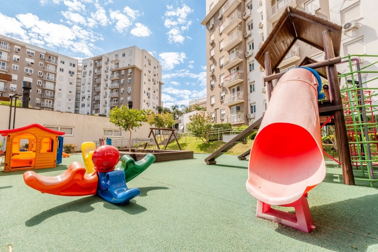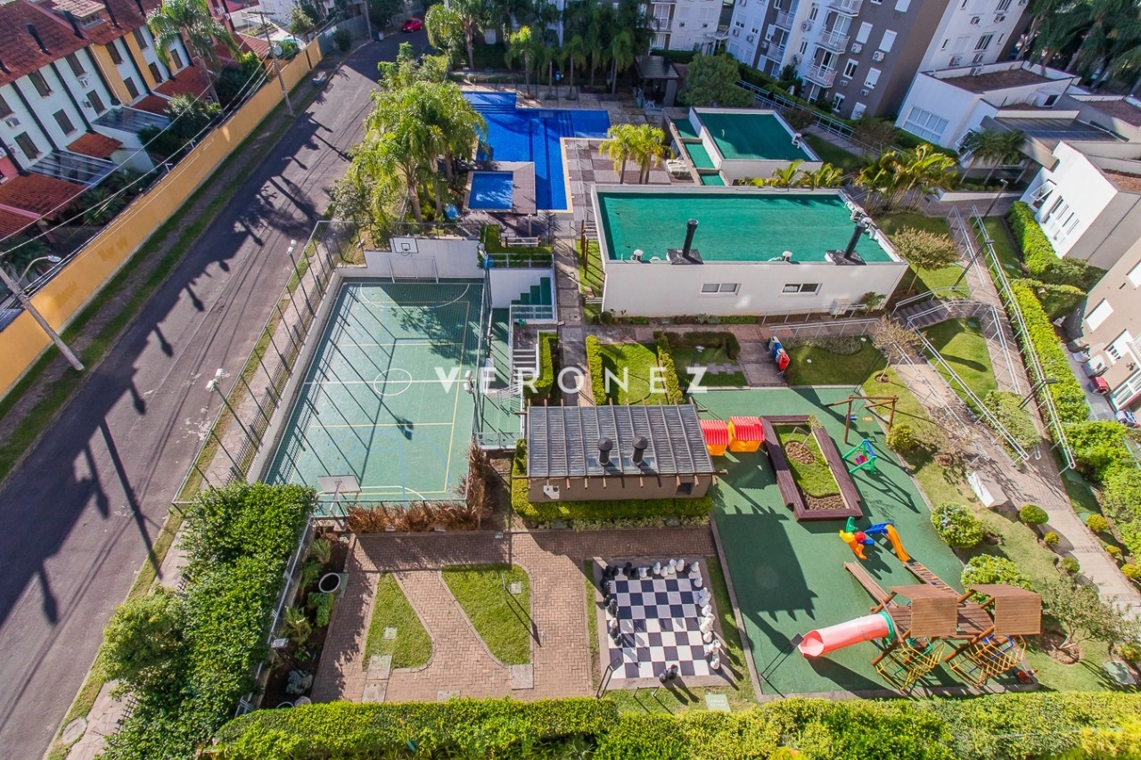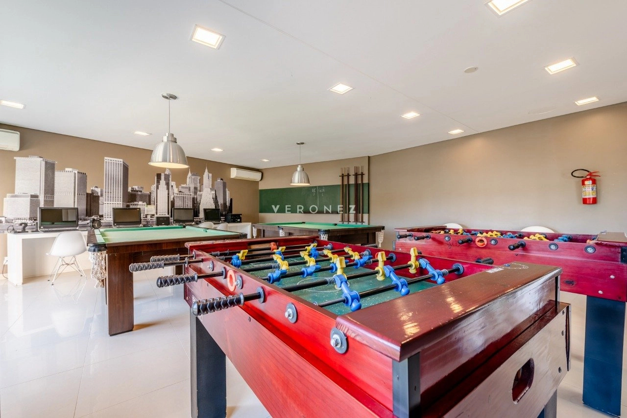 O condomínio oferece infraestrutura completa, com 2 salões de festas, piscina, quadra poliesportiva, espaço kids, academia, sala de jogos e portaria 24 horas.