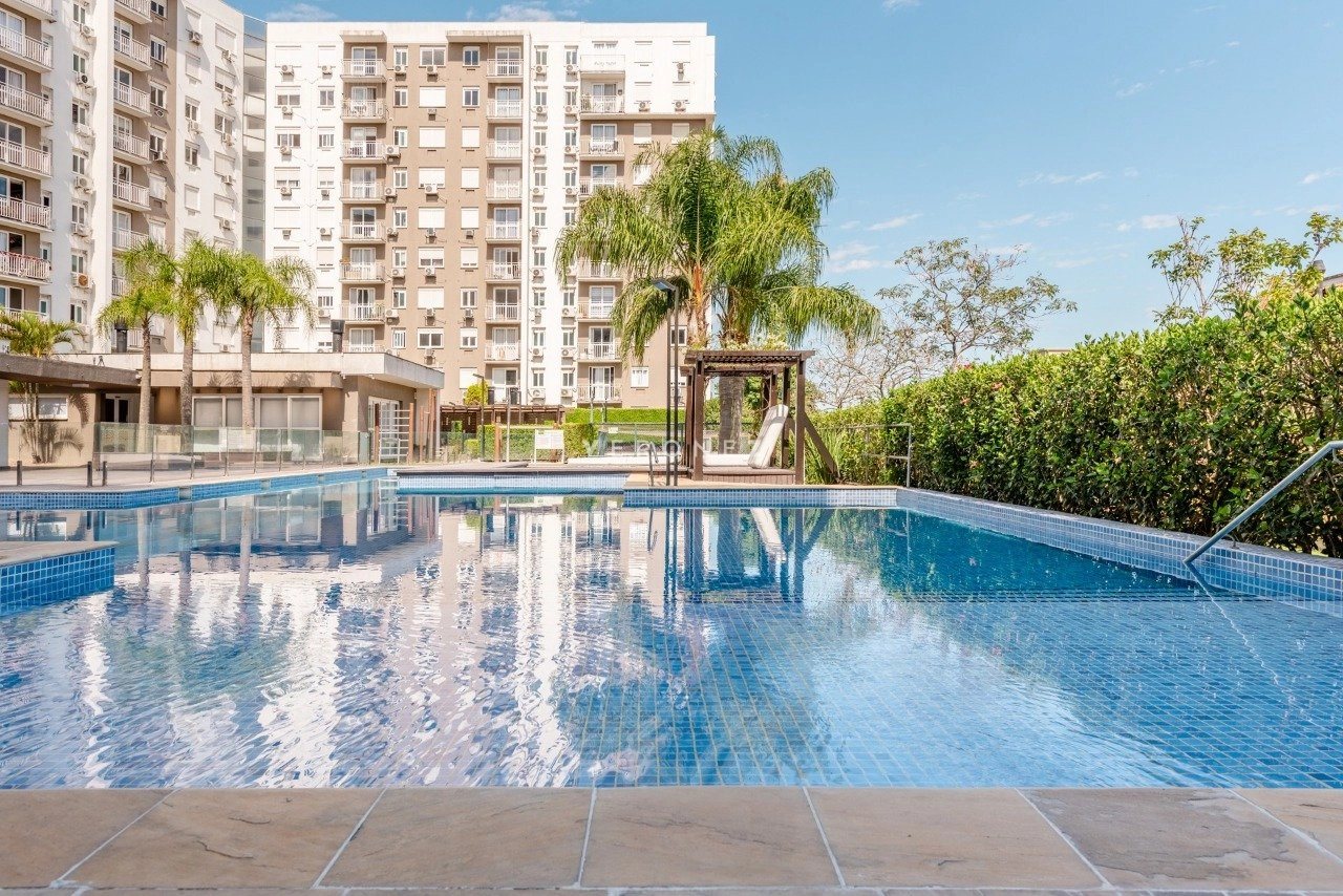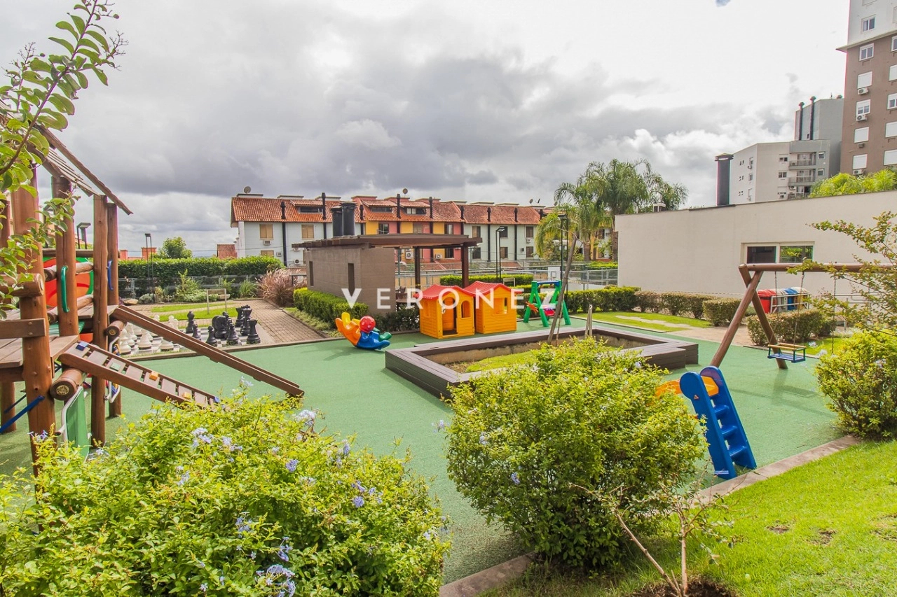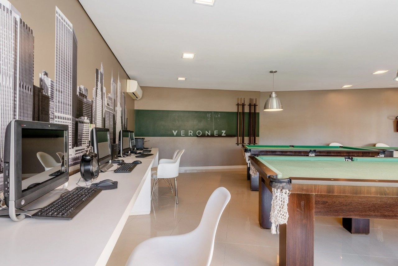 O condomínio oferece infraestrutura completa, com 2 salões de festas, piscina, quadra poliesportiva, espaço kids, academia, sala de jogos e portaria 24 horas.
