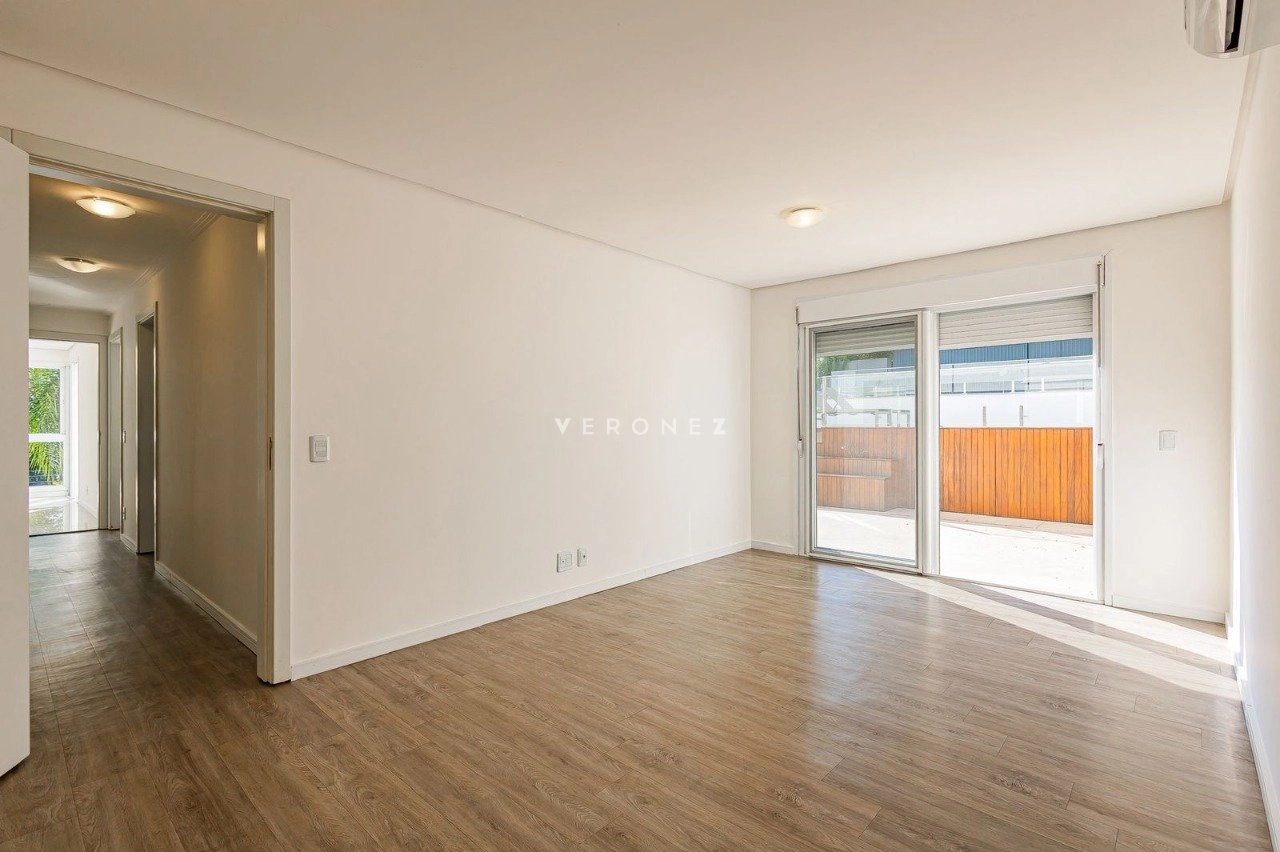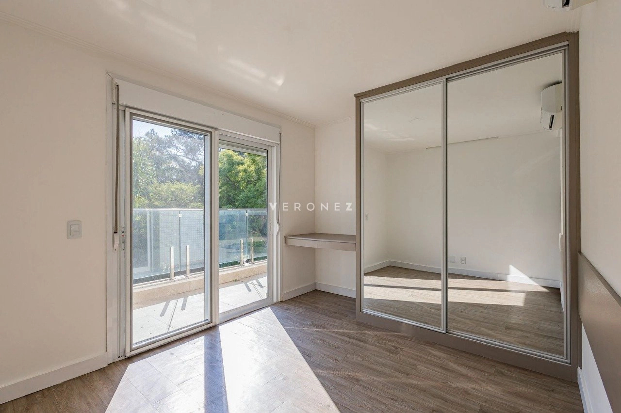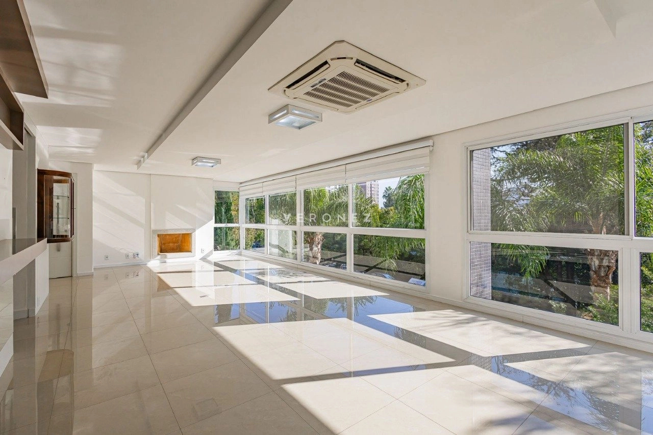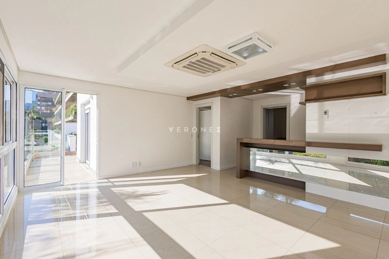 Apartamento de 305m², com 3 suítes. Possui living para dois ambientes com lareira, amplo garden com piscina privativa e 135 m² de pátio, churrasqueira, cozinha, área de serviço, 5 banheiros, 4 vagas de garagem e dois depósitos individuais.