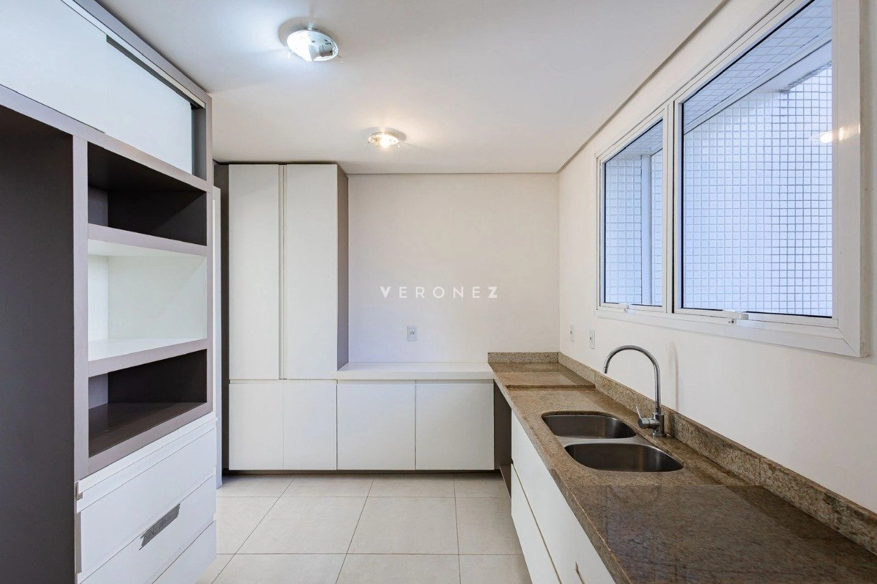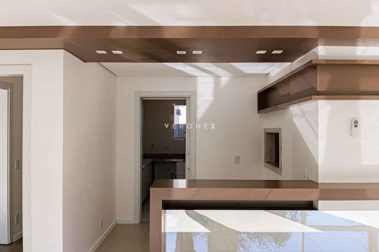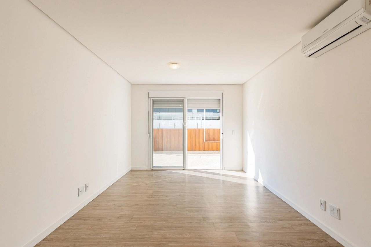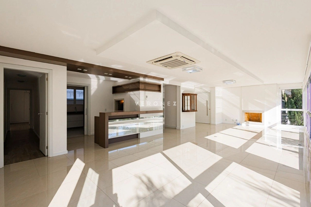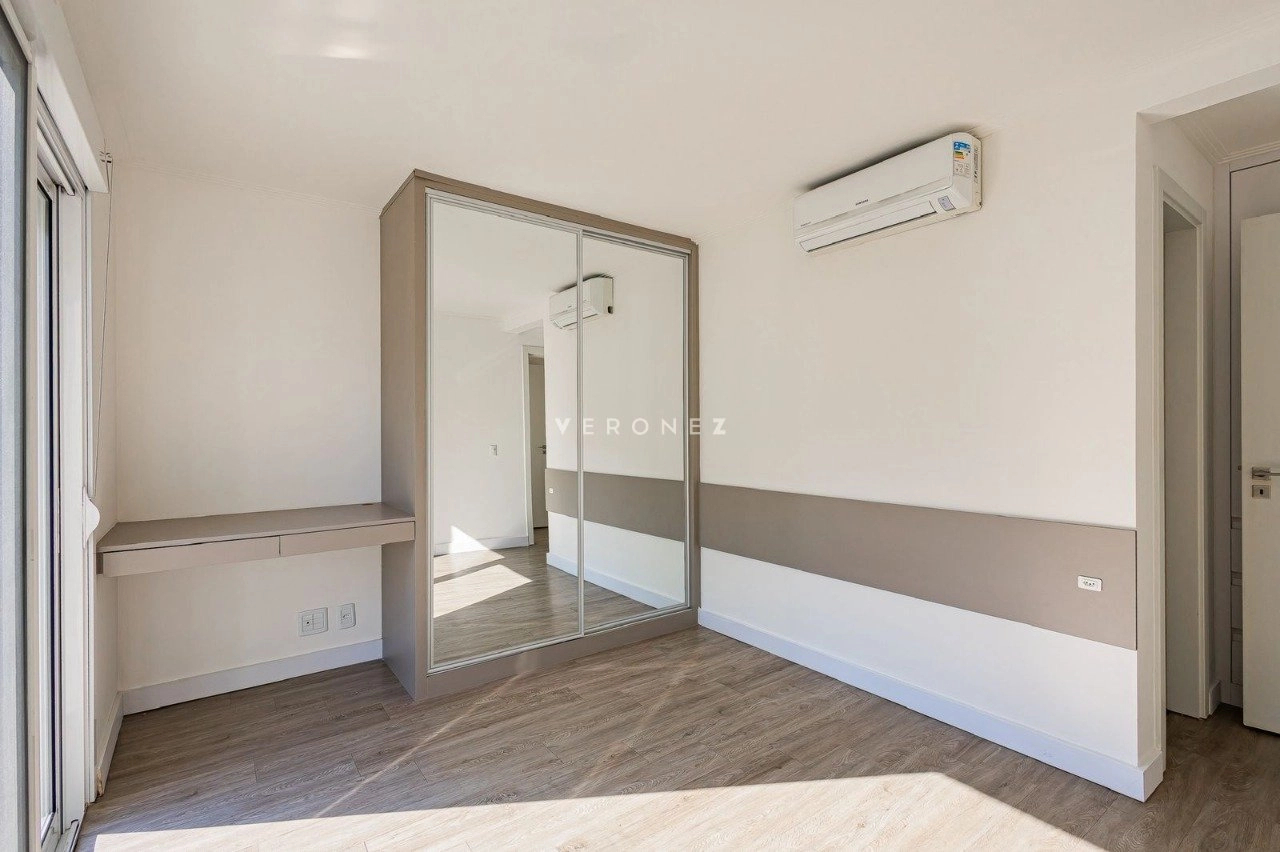 Apartamento de 305m², com 3 suítes. Possui living para dois ambientes com lareira, amplo garden com piscina privativa e 135 m² de pátio, churrasqueira, cozinha, área de serviço, 5 banheiros, 4 vagas de garagem e dois depósitos individuais.
