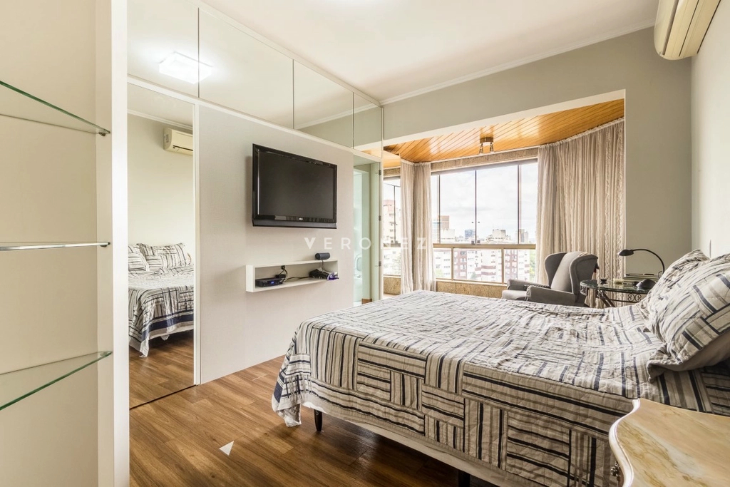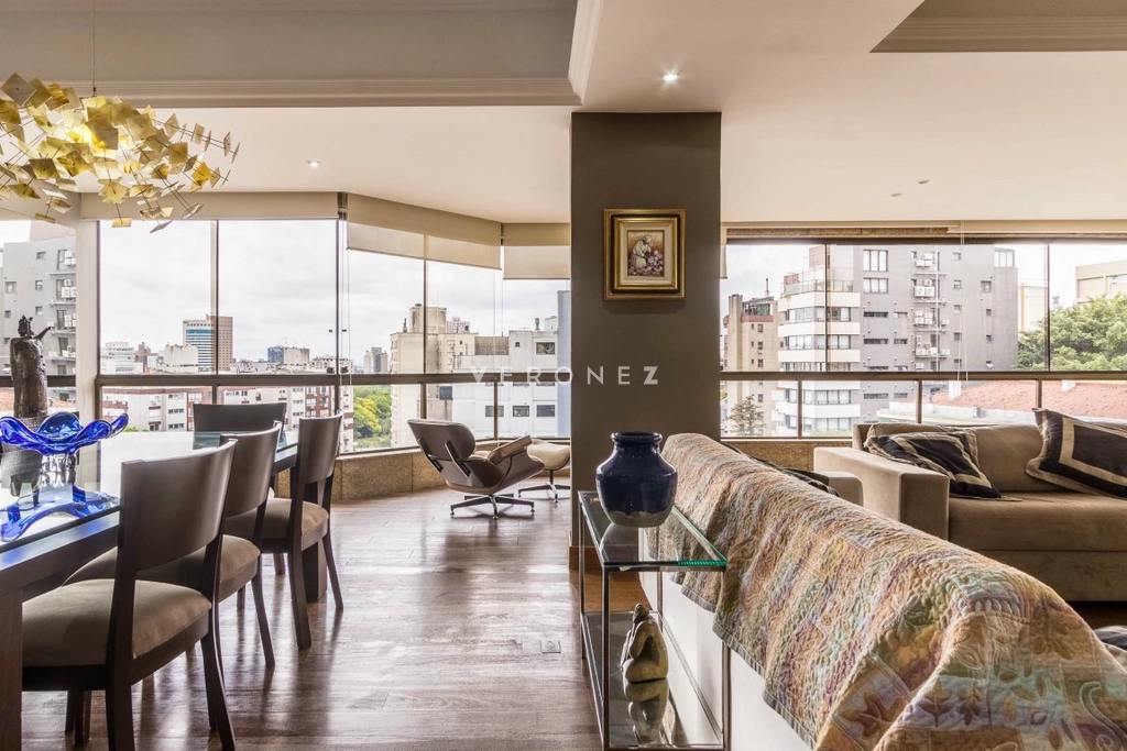 Amplo apartamento de 244m² com 2 suítes completas, sendo uma master com closet e sacada integrada. Living com sacada integrada com orientação solar NORTE/LESTE, estar íntimo (ou home oce), espaço gourmet com churrasqueira. Preço e disponibilidade do imóvel sujeitos a alteração sem aviso prévio.