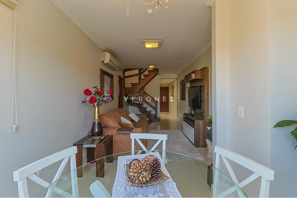 Cobertura reformada com 150 m2, três dormitórios sendo duas suítes e vistas abundantes, oferecendo ambientes aconchegantes e bem iluminados. A sala de estar conta com lareira e janelas amplas que garantem luz natural ao longo do dia. A área externa possui churrasqueira e piscina privativa, criando um espaço ideal para lazer e convivência. A decoração é moderna, com móveis e acabamentos de bom gosto. Na entrada, a cozinha decorada e equipada com área de serviço integra funcionalidade e acolhimento. No primeiro nível, encontram se dois dormitórios, sendo um deles suíte. No segundo nível está a terceira suíte, garantindo privacidade e conforto. O imóvel tem excelente aproveitamento solar com janelas estrategicamente posicionadas. É único por andar, proporcionando privacidade em prédio com apenas seis unidades. Localizado em rua calma, arborizada e silenciosa, oferece ambiente sereno com qualidade de vida e tranquilidade. Agende uma visita. Preço e disponibilidade do imóvel sujeitos a alteração sem aviso prévio.