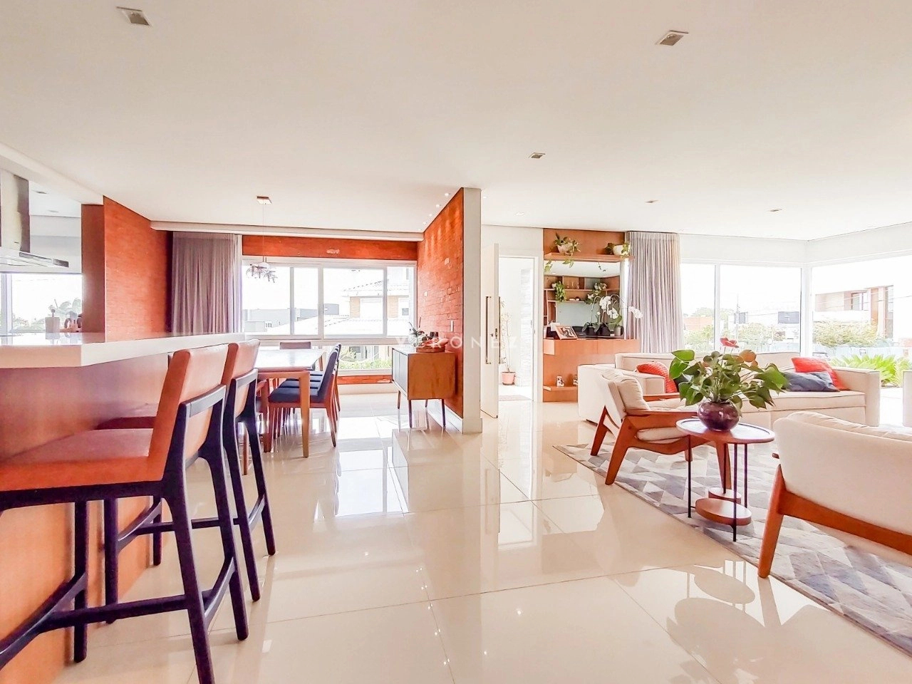 Belíssima casa mobiliada para locação no Alphaville Zona Sul, em Porto Alegre. Com 260 m² de área privativa, o imóvel conta com 3 suítes, 5 banheiros e 2 vagas de garagem, oferecendo conforto, privacidade e uma rotina prática em um ambiente seguro e tranquilo.