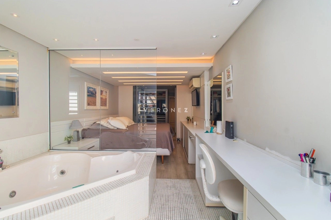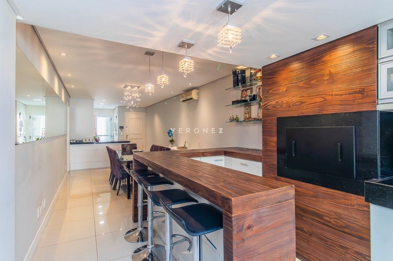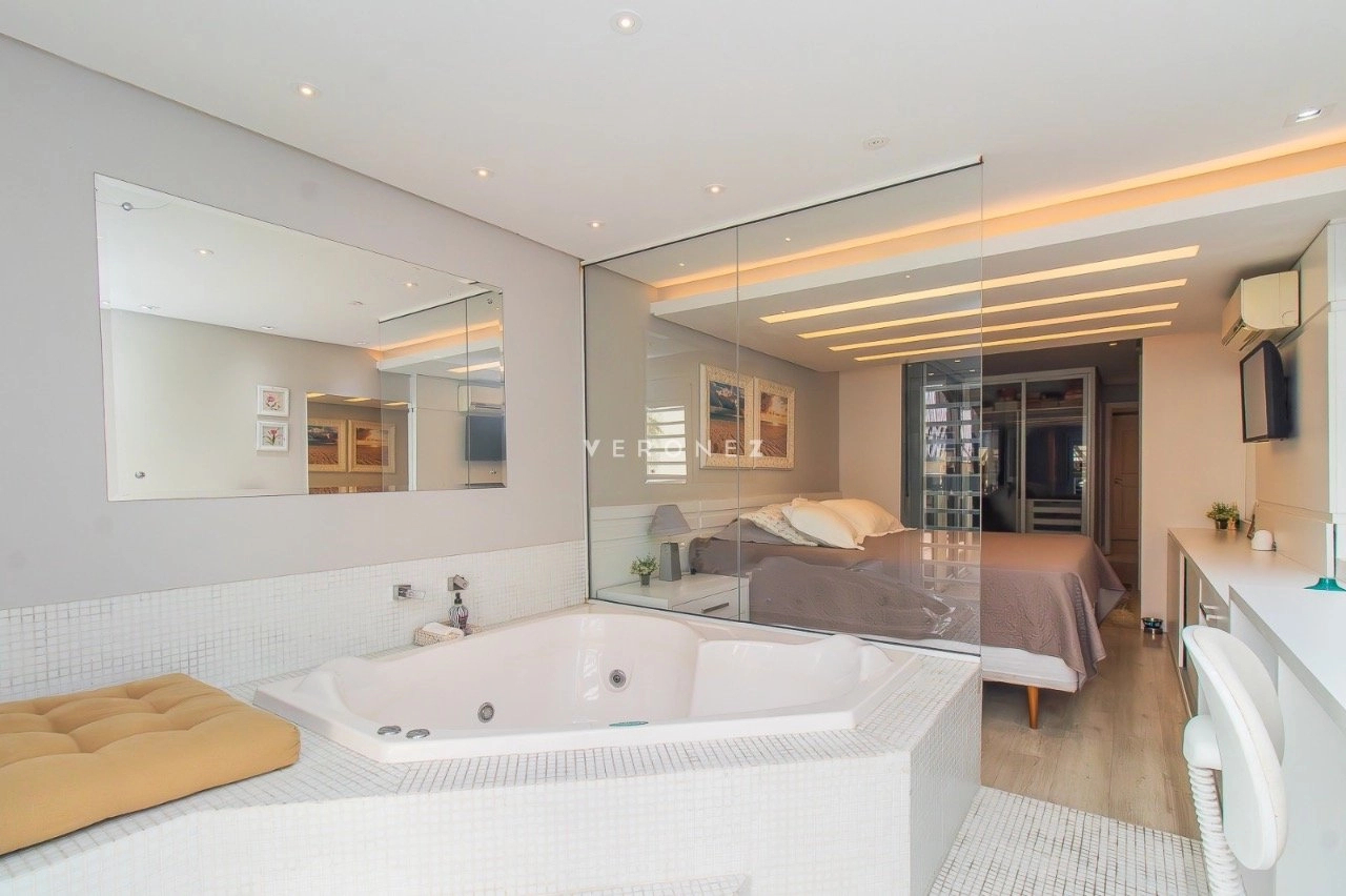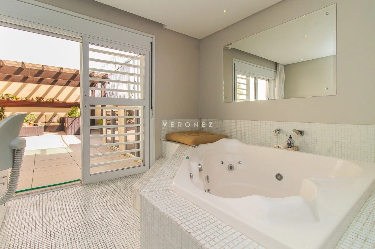 Apartamento garden semimobiliado, com 180 m² de área privativa, 2 dormitórios, sendo 1 suíte com closet e hidromassagem. O living é para 2 ambientes e conta com churrasqueira. A cozinha é americana e o imóvel dispõe ainda de banheiro social e 1 vaga de garagem.