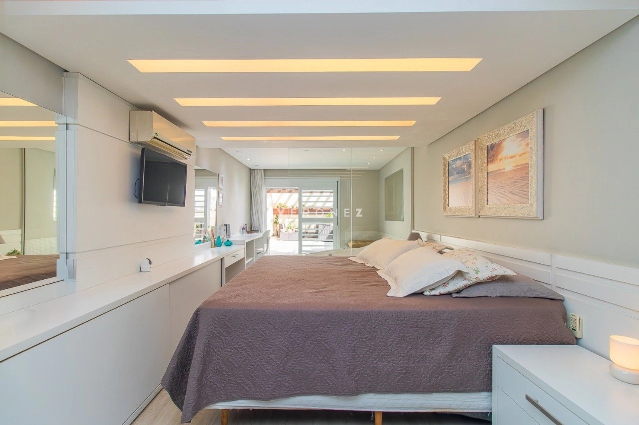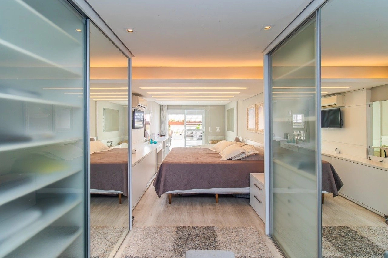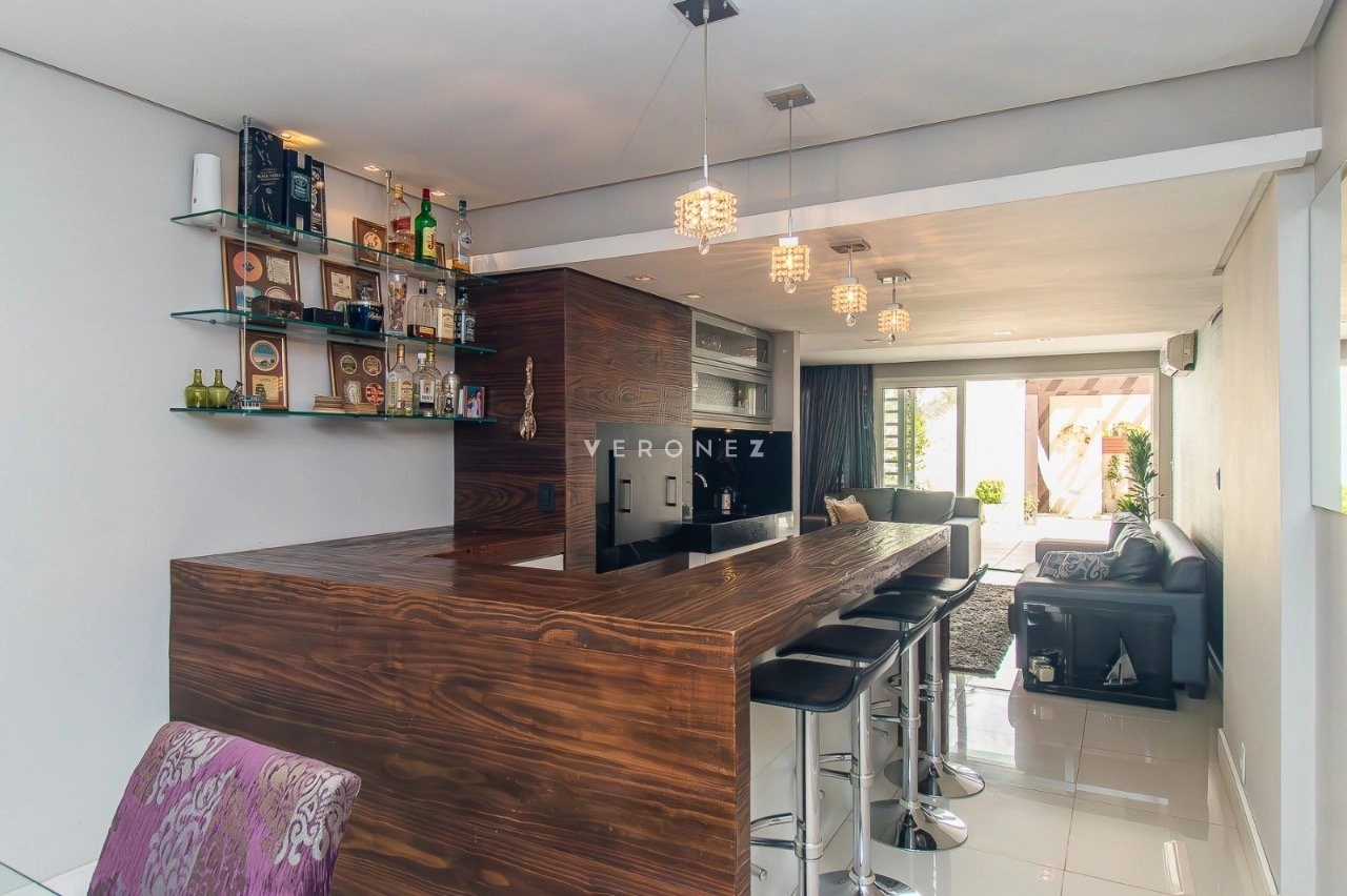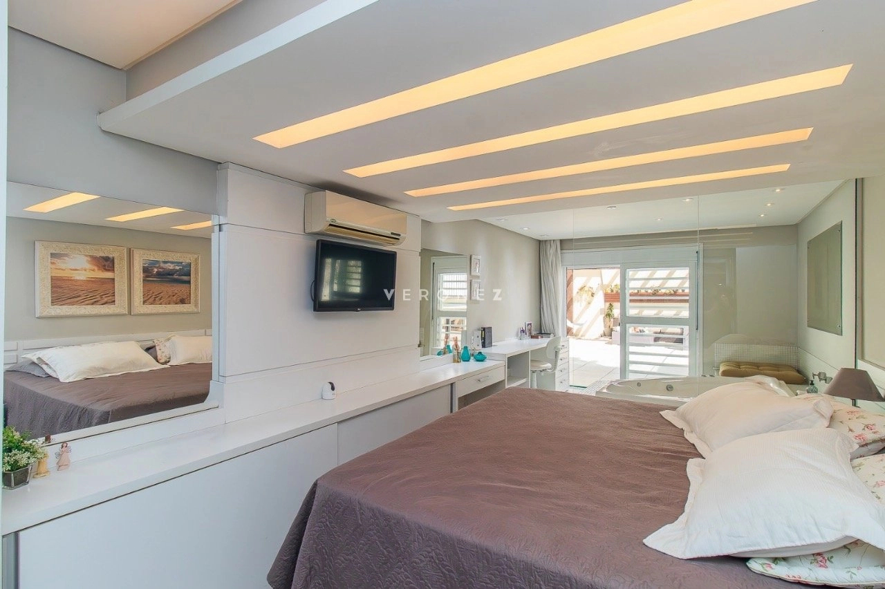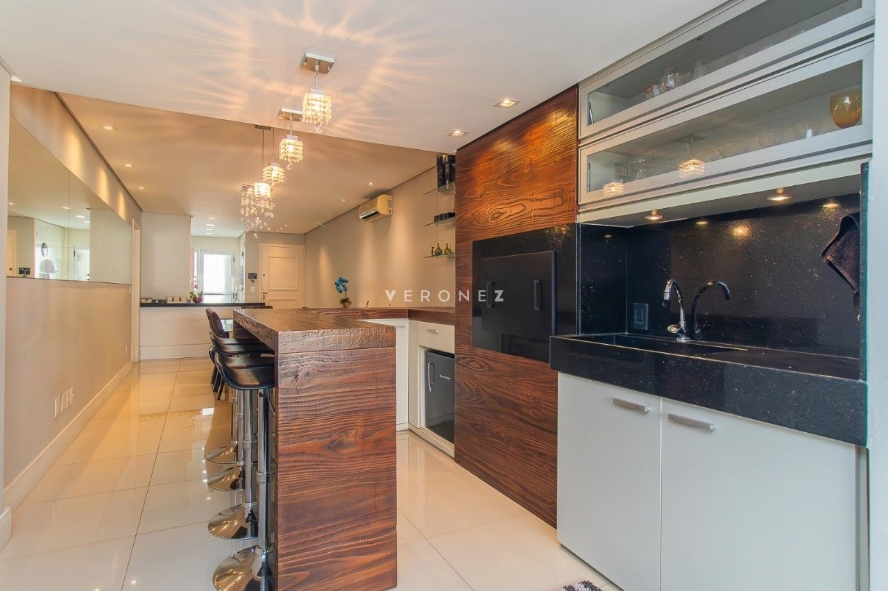 Apartamento garden semimobiliado, com 180 m² de área privativa, 2 dormitórios, sendo 1 suíte com closet e hidromassagem. O living é para 2 ambientes e conta com churrasqueira. A cozinha é americana e o imóvel dispõe ainda de banheiro social e 1 vaga de garagem.